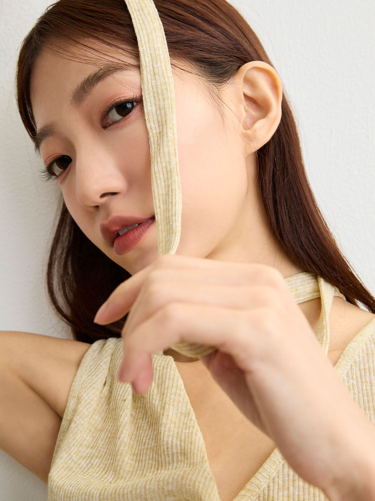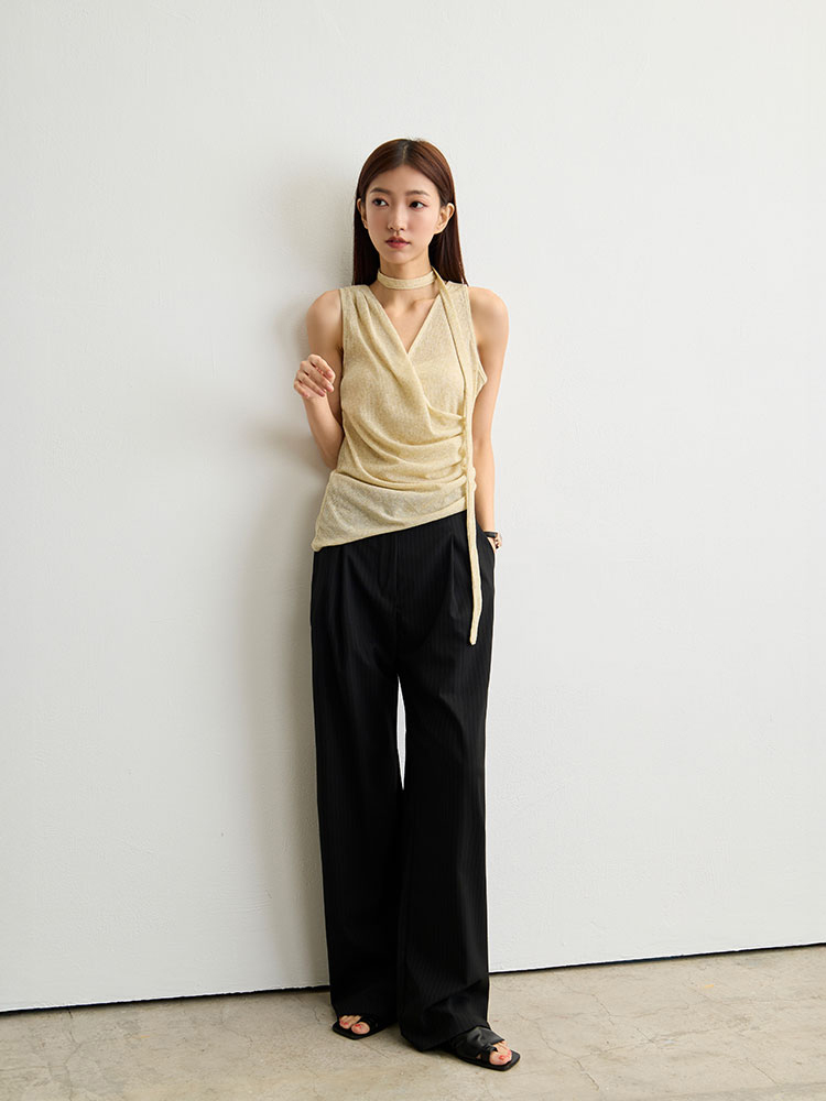 不對稱V領剪裁搭配側收褶設計,自然修飾腰部線條