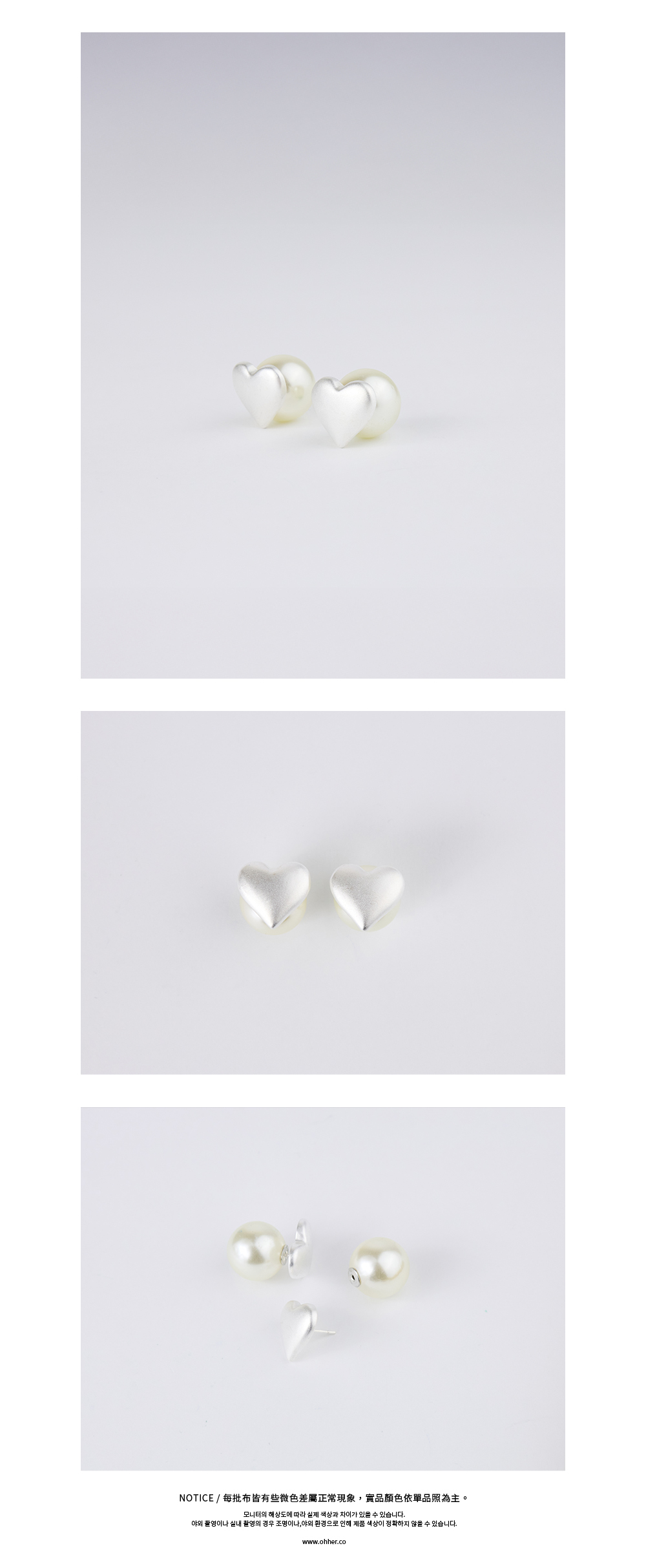 「霧面金屬愛心」X「圓潤珍珠後釦」俐落中蘊含溫柔優雅,