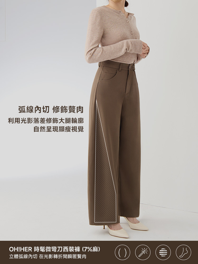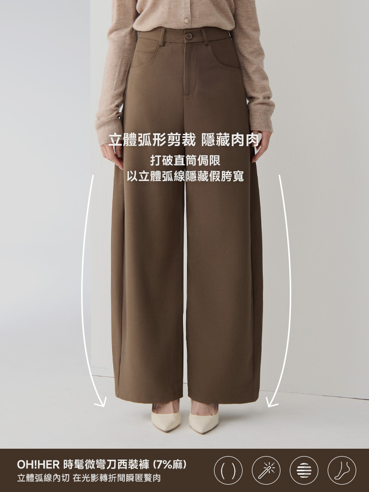 帶有自然弧度,有效修飾腿部線條,創造立體的寬鬆時髦感