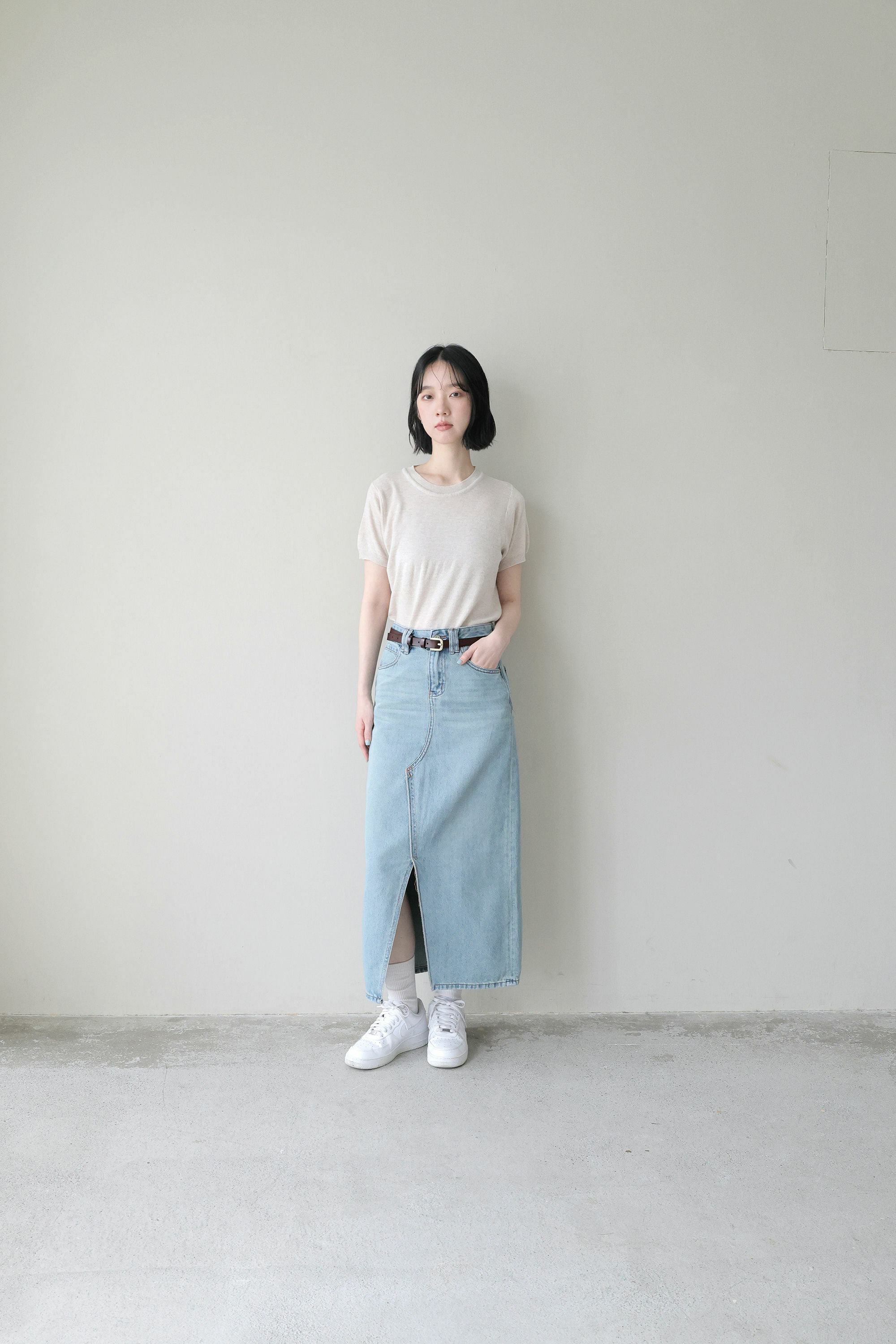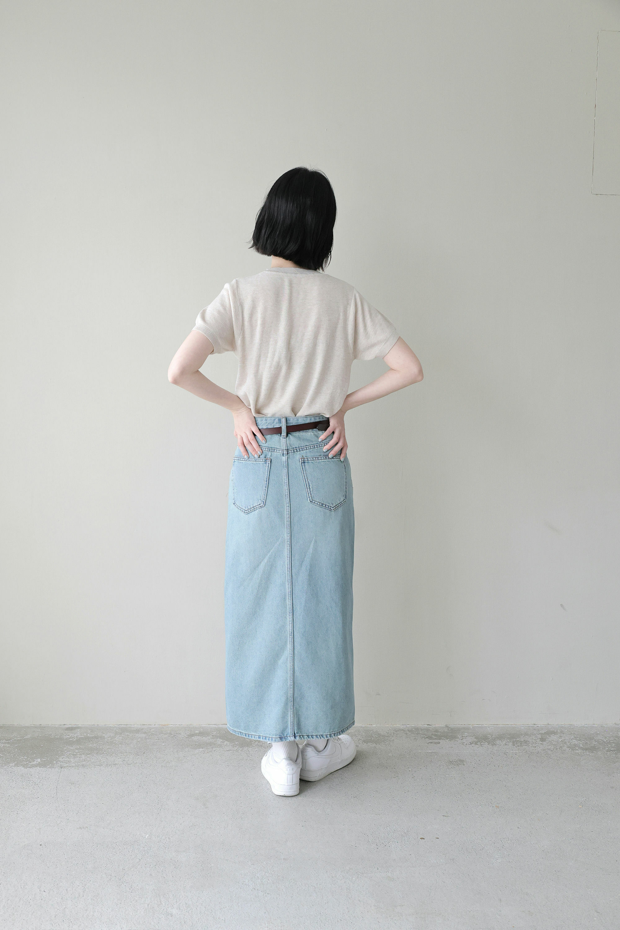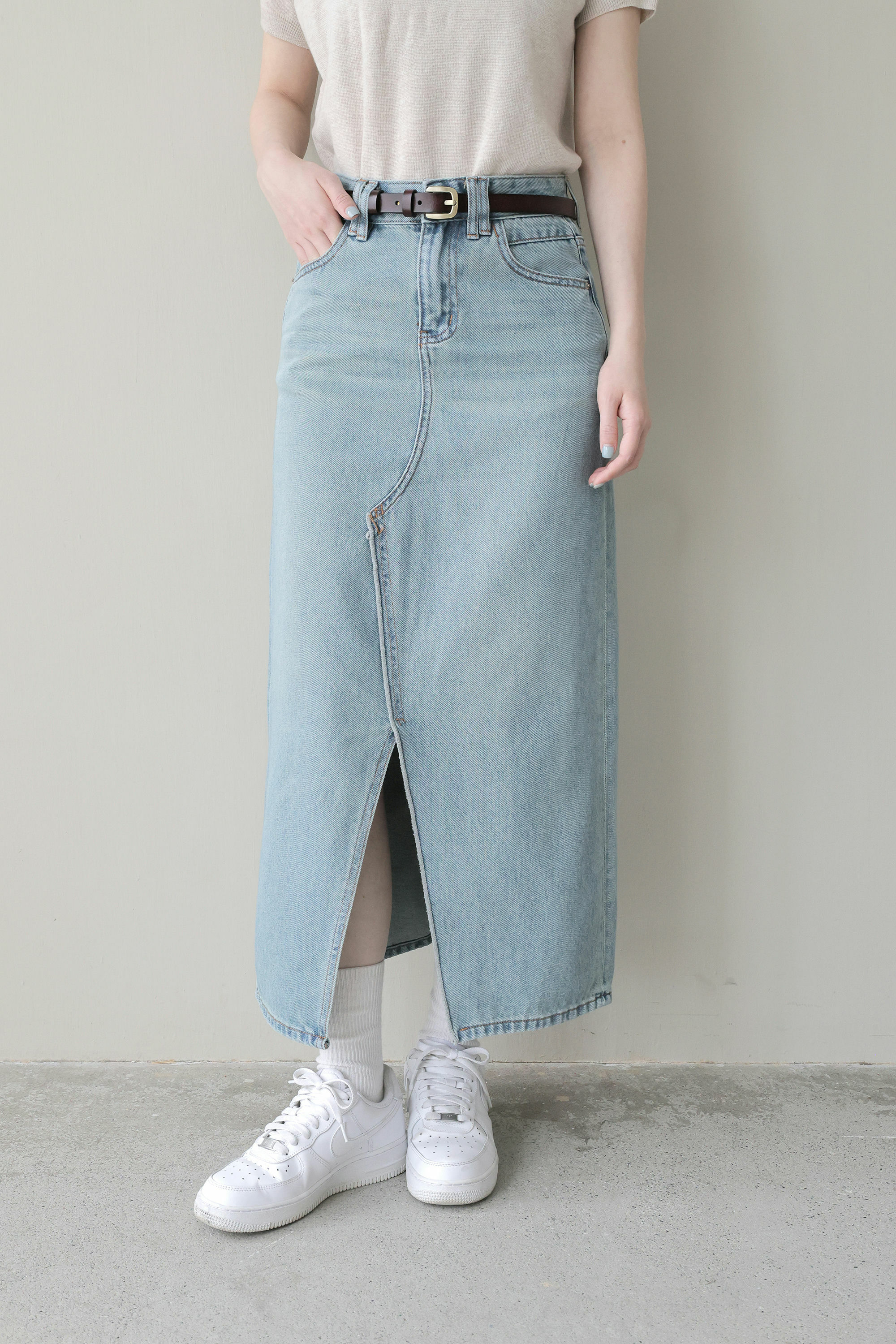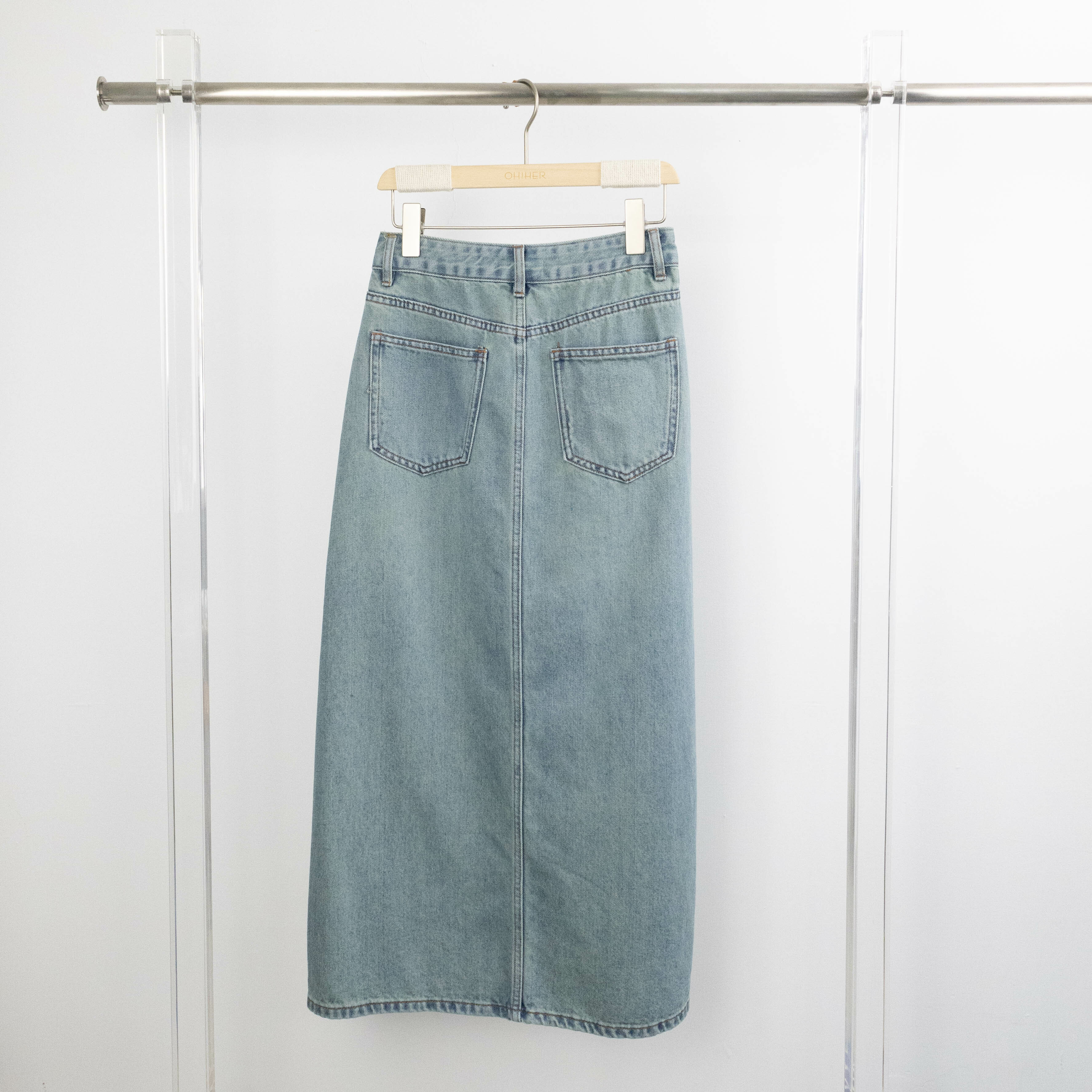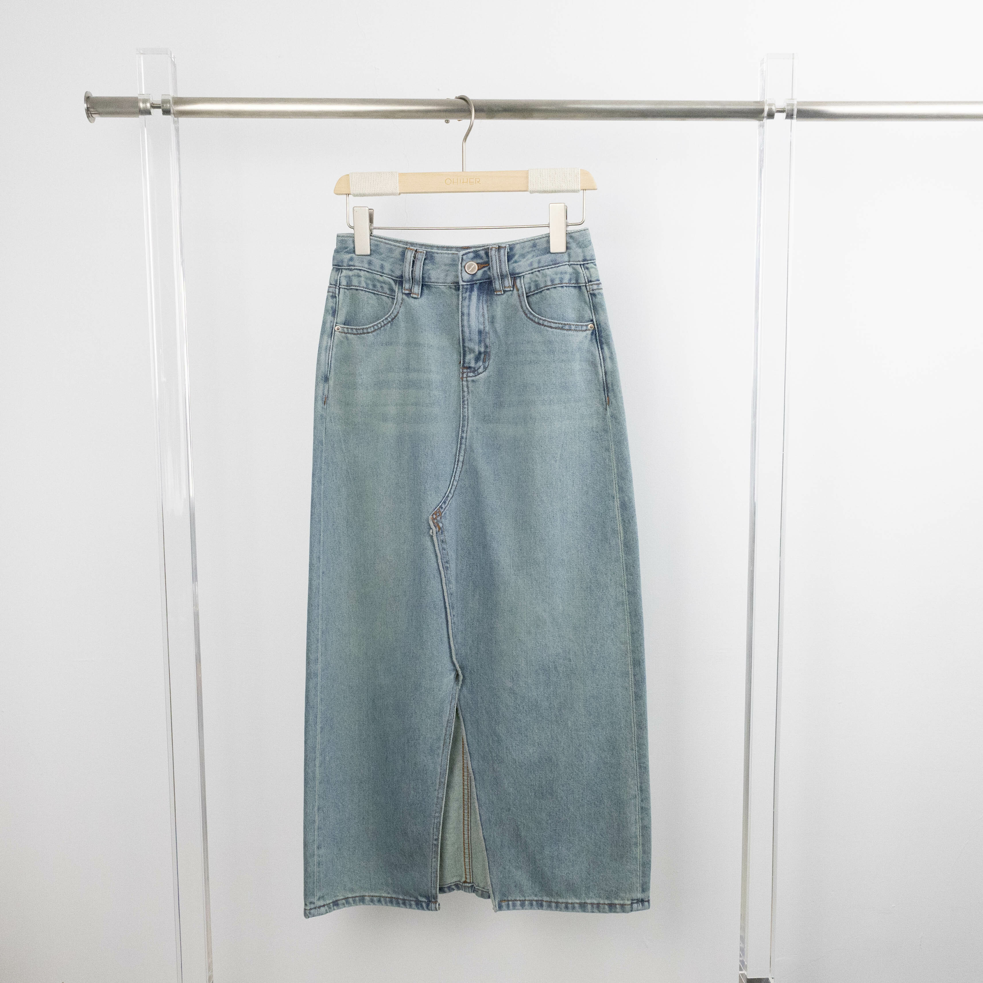 經典藍刷色牛仔長裙