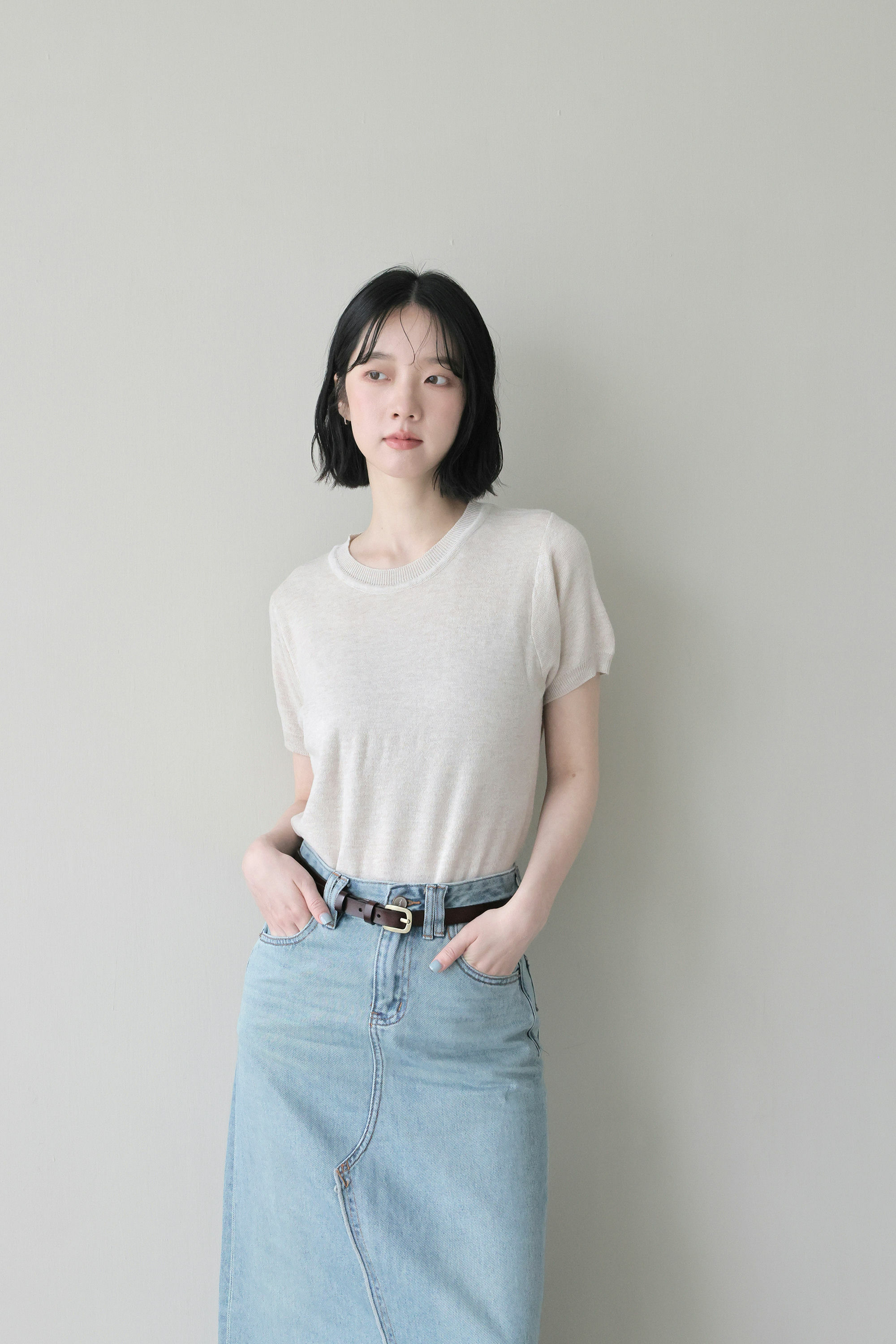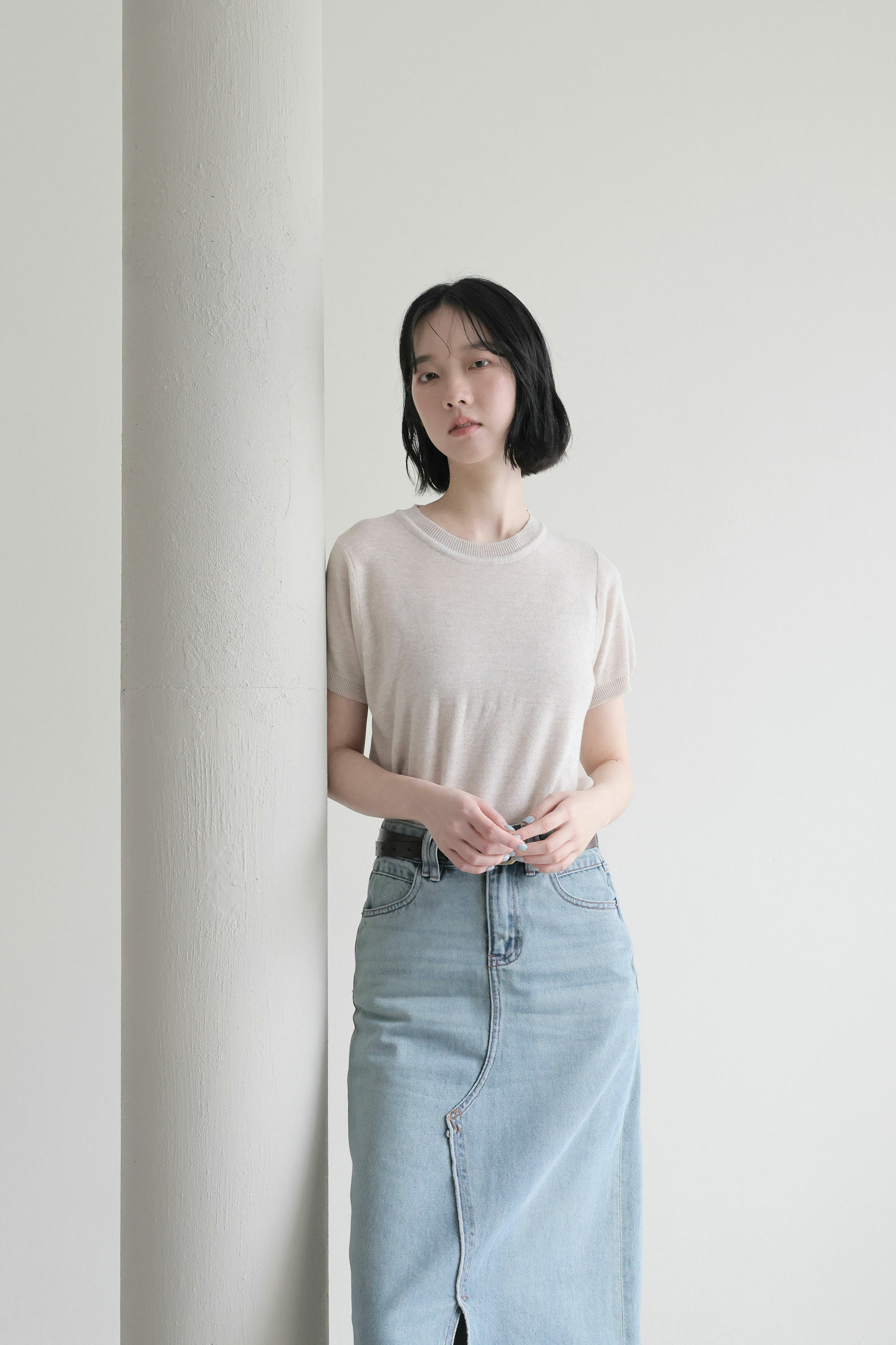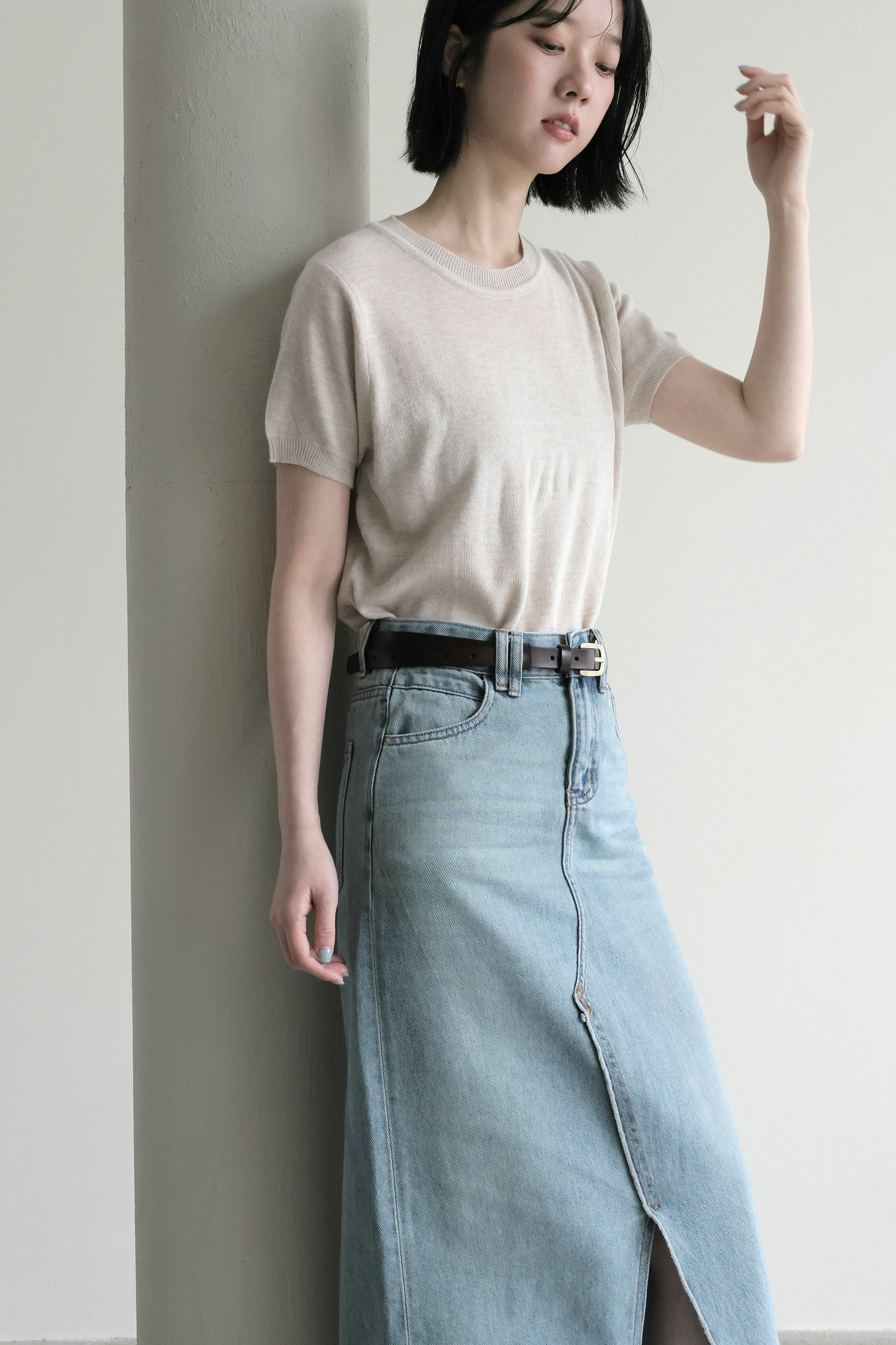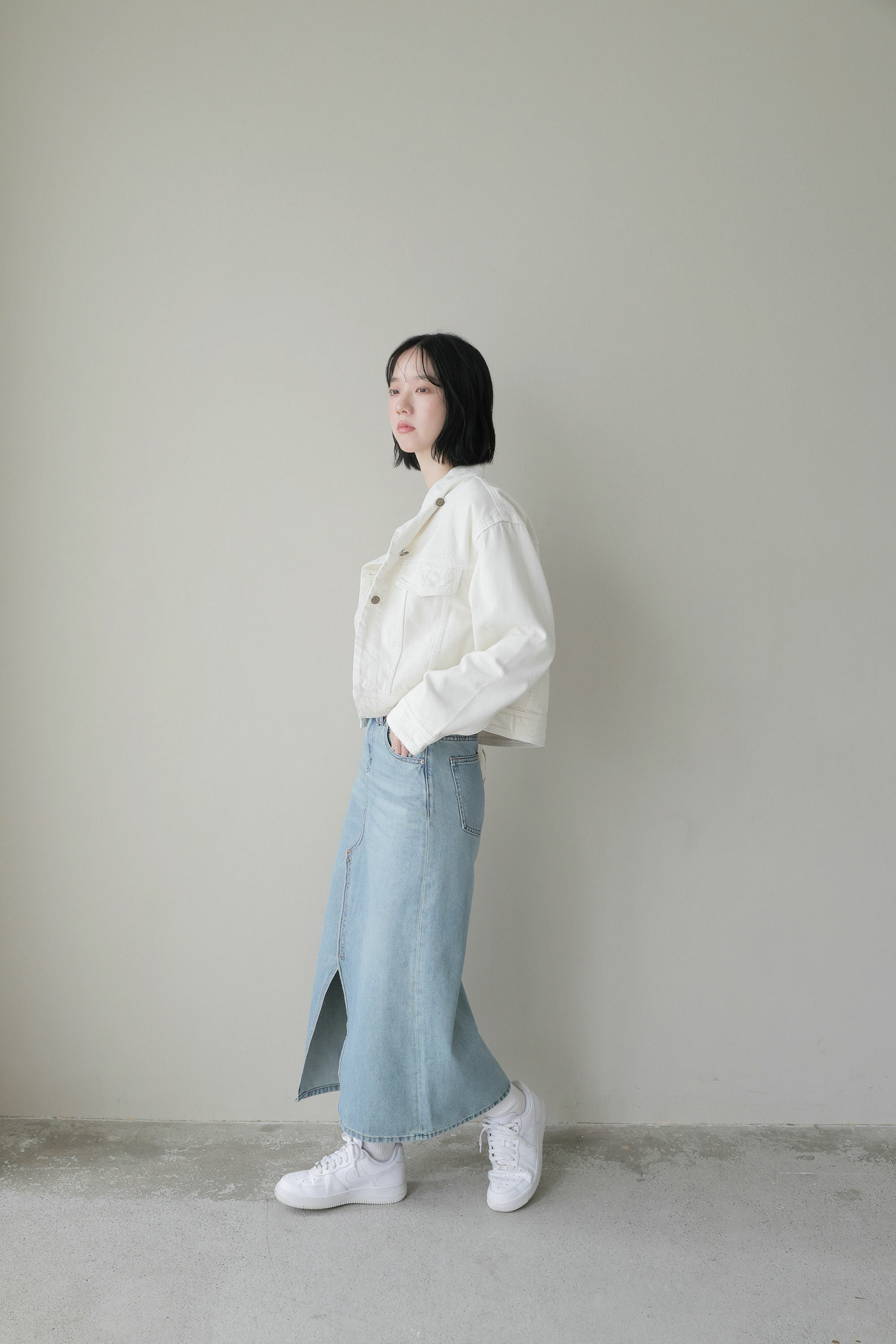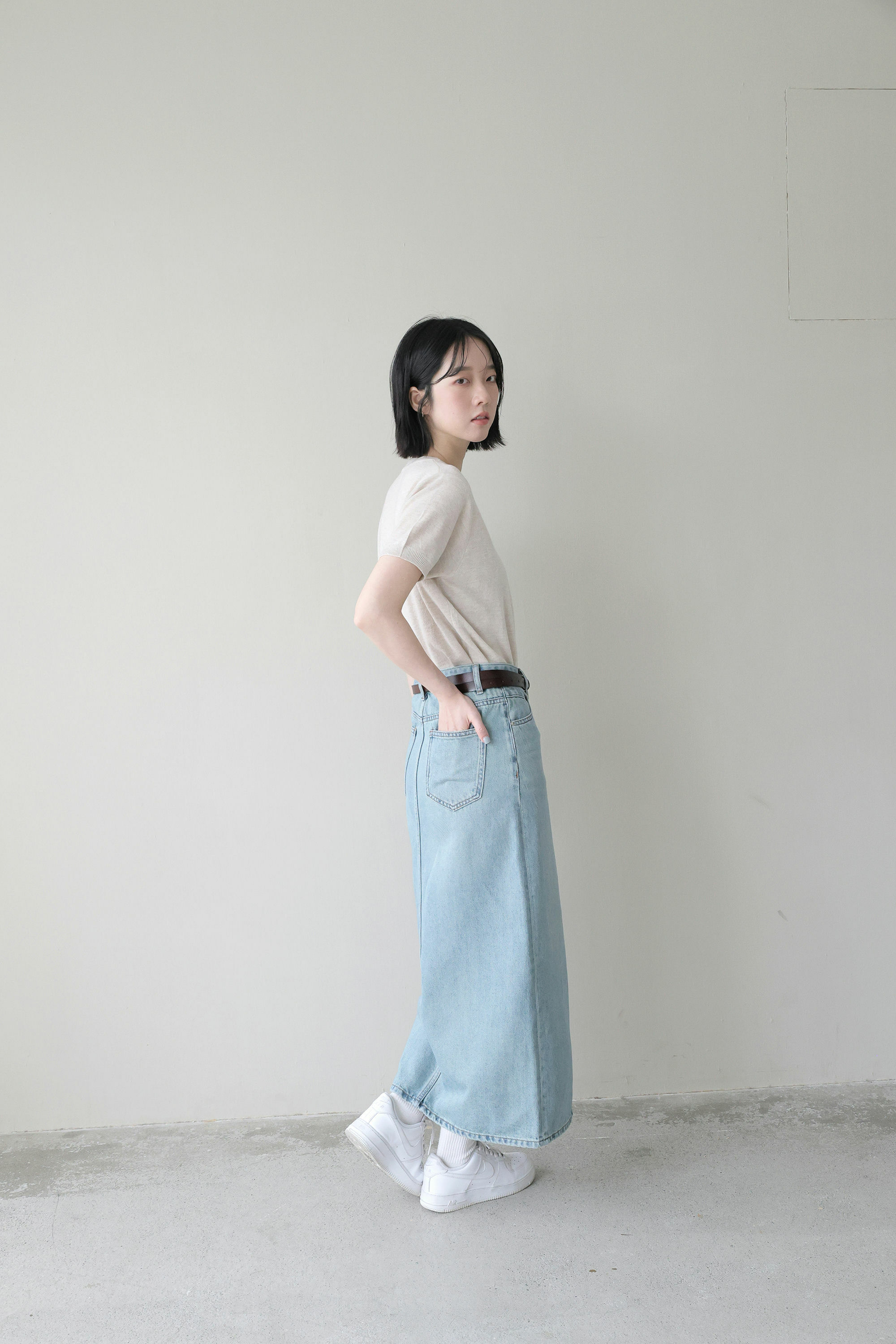 經典藍刷色牛仔長裙