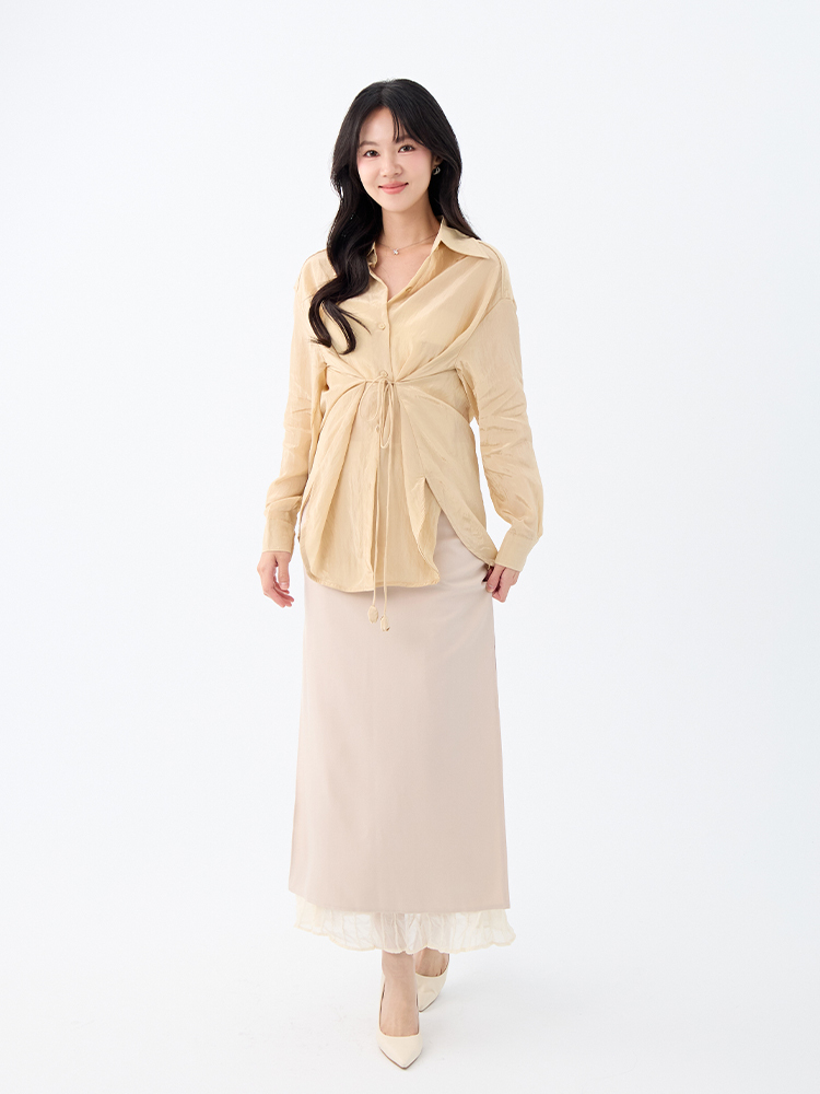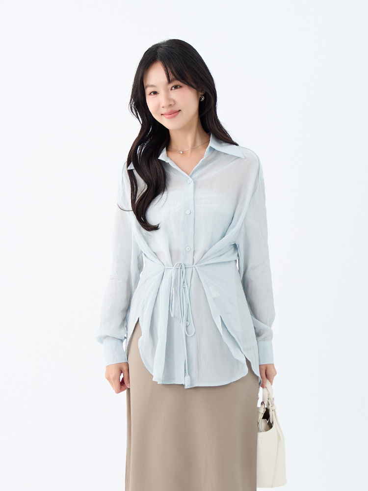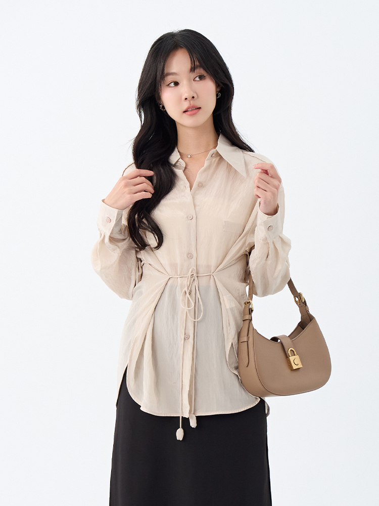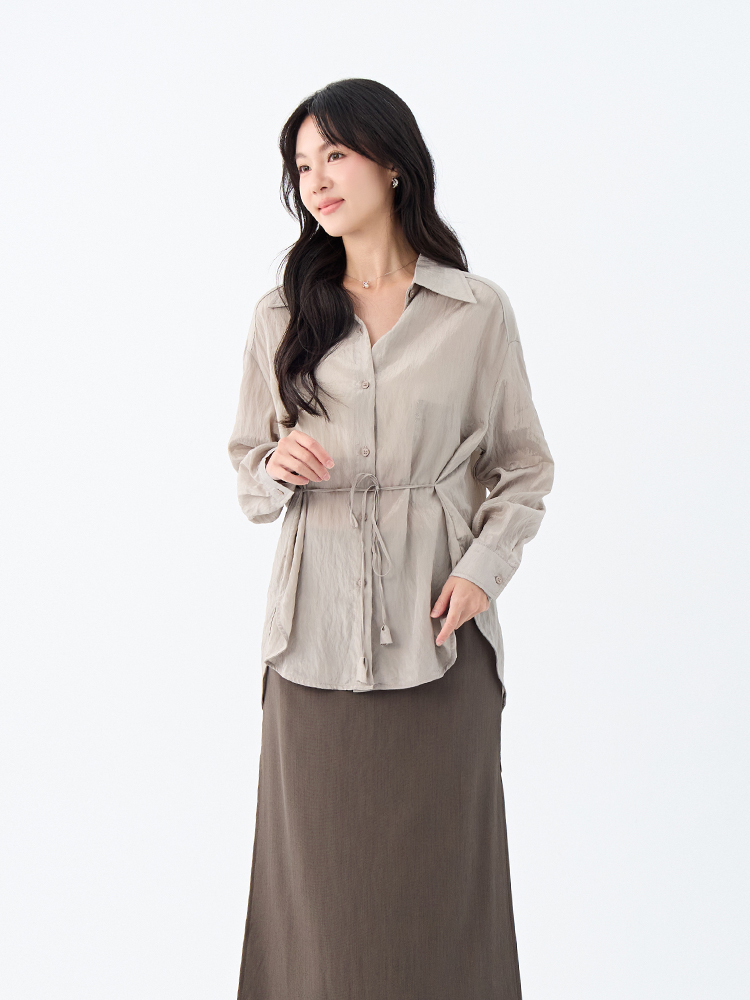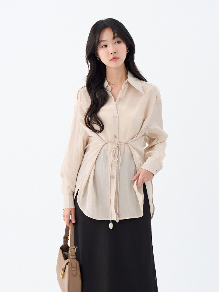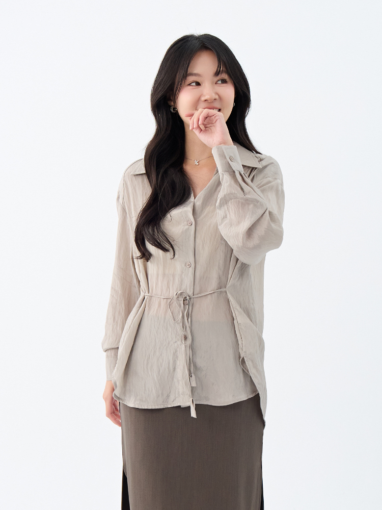 •【OH !HER 水波光澤感寬鬆綁帶襯衫】