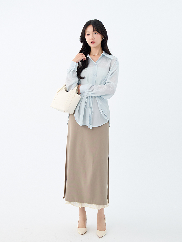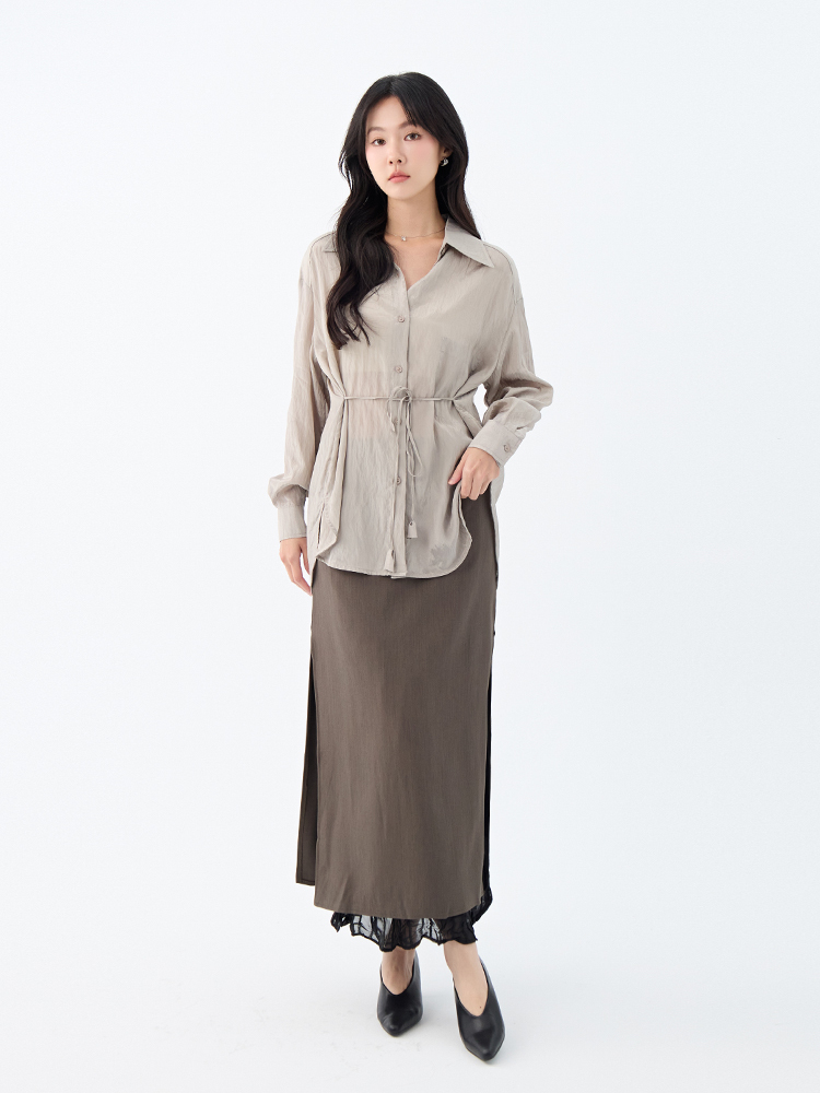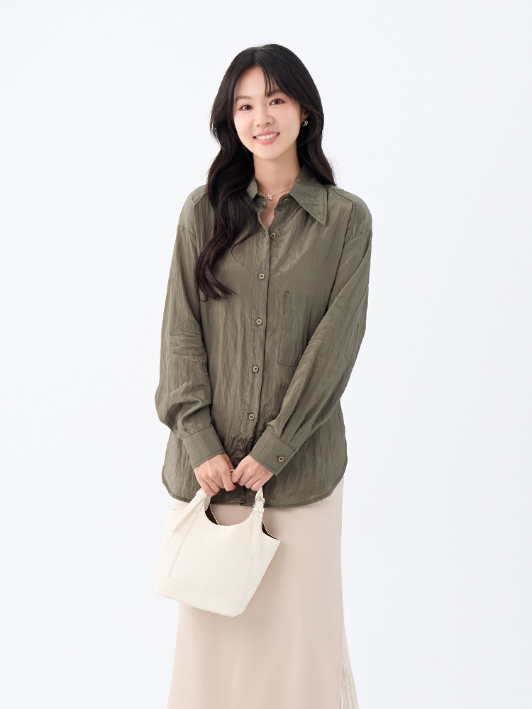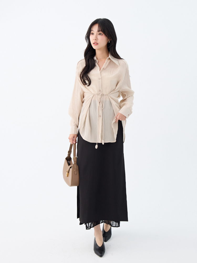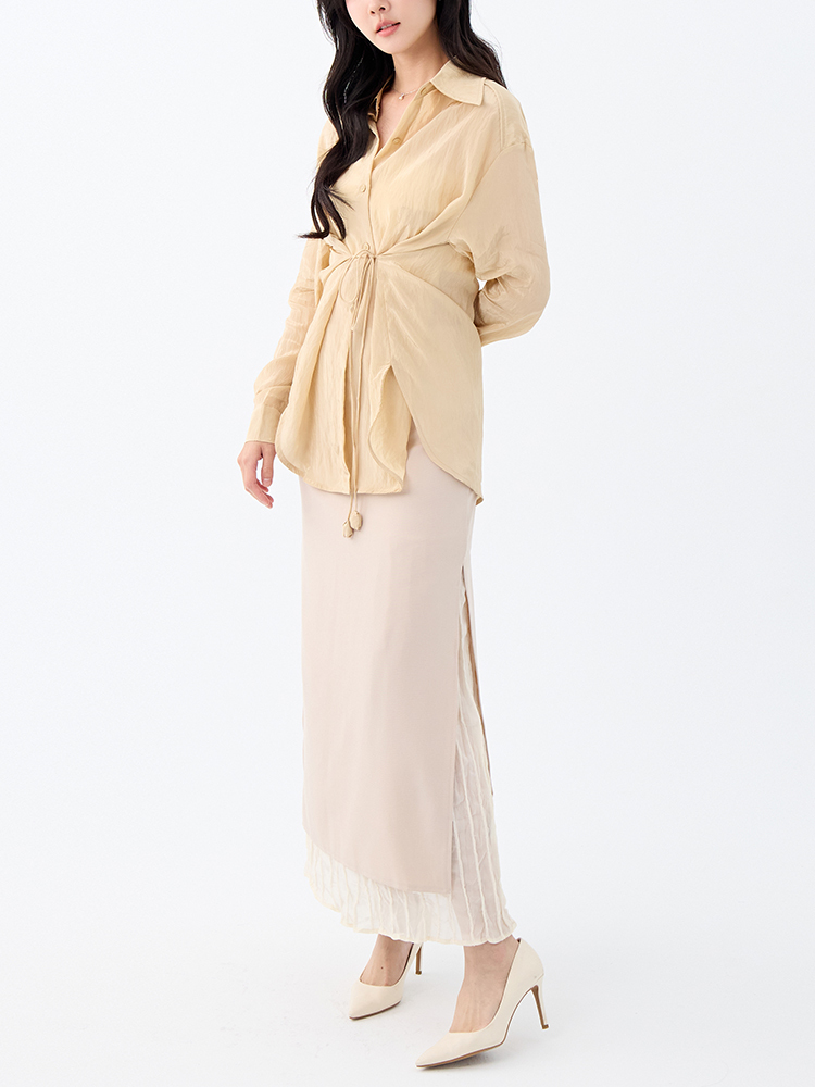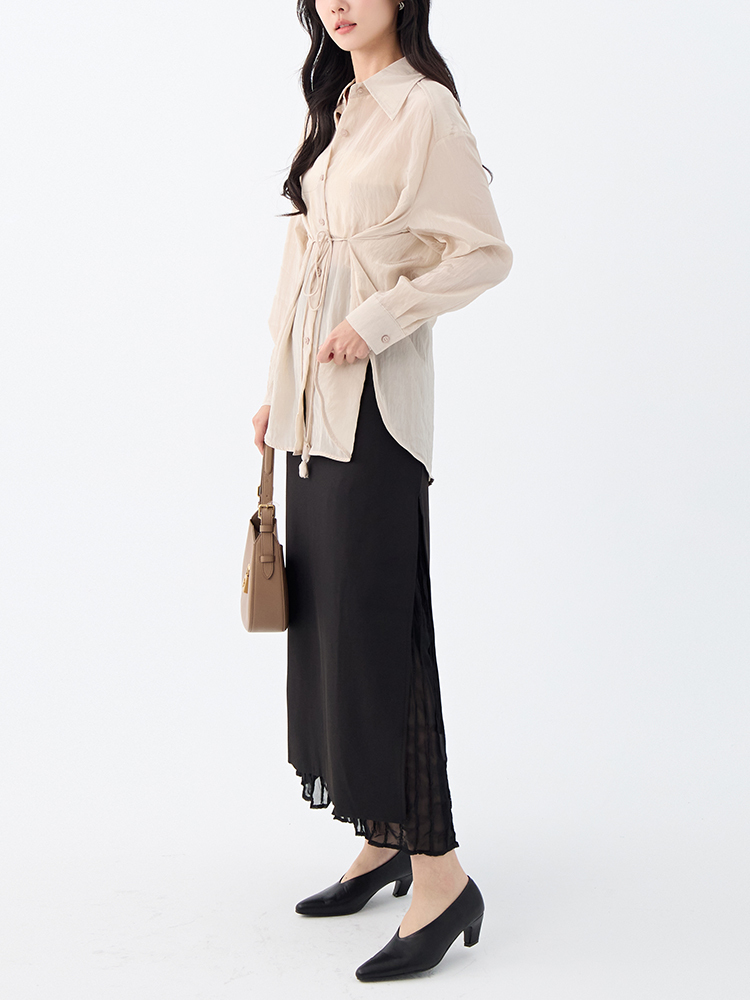 •【OH !HER 水波光澤感寬鬆綁帶襯衫】