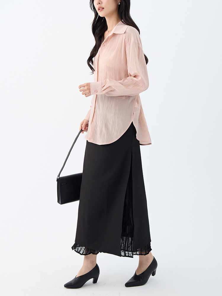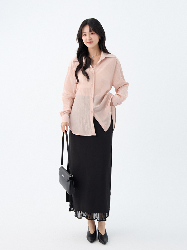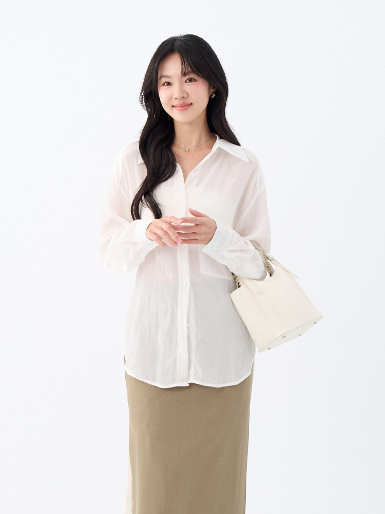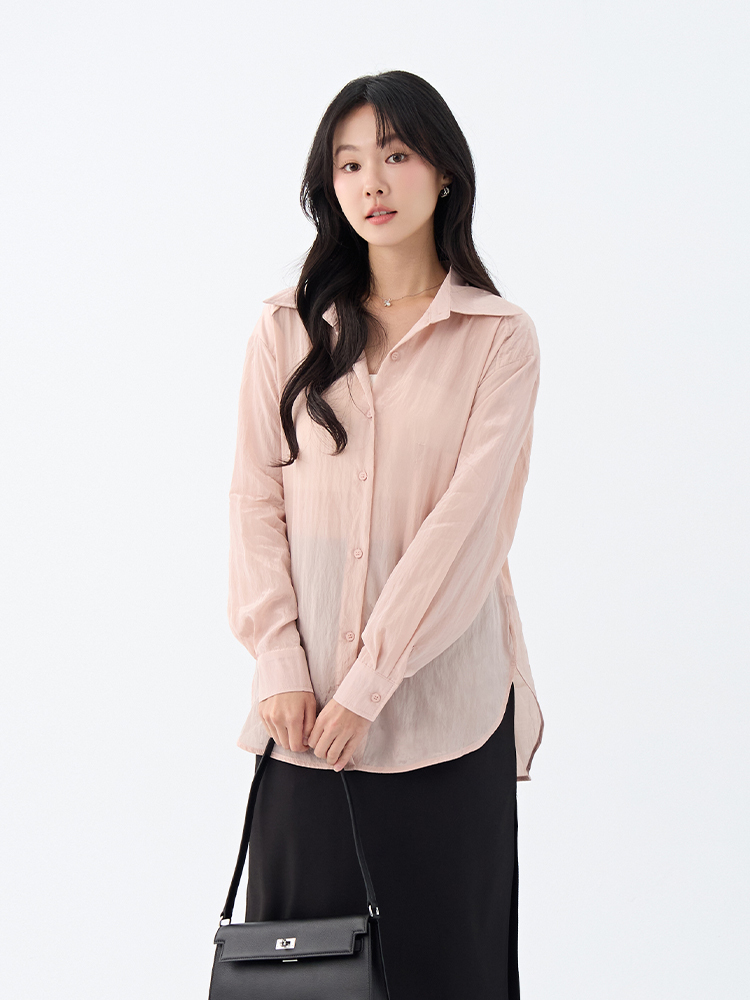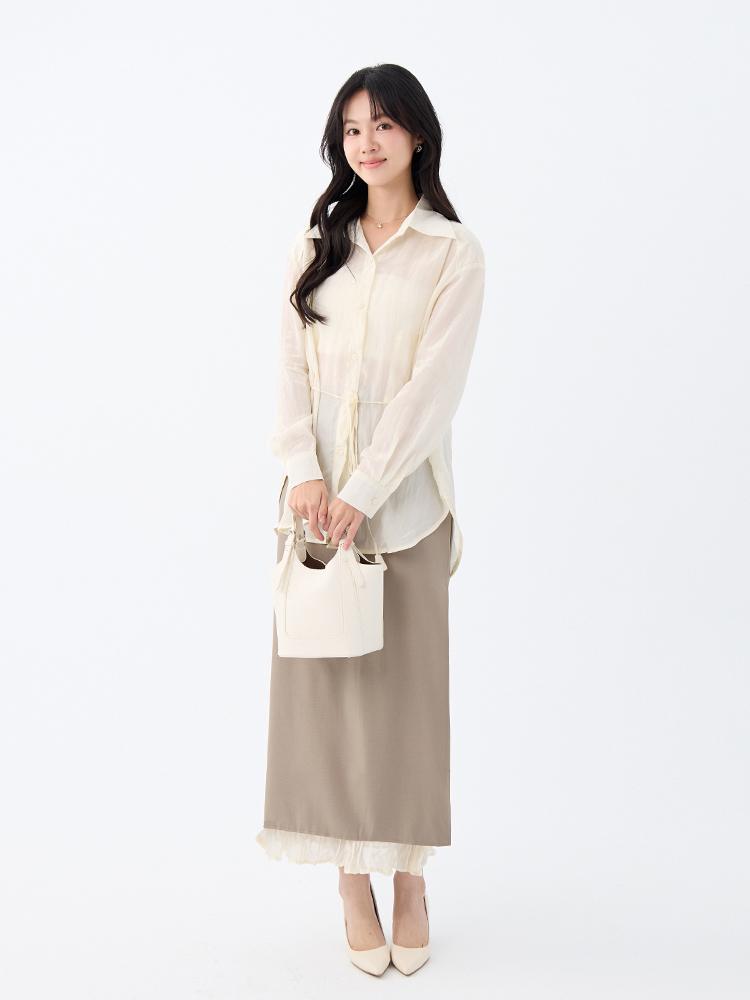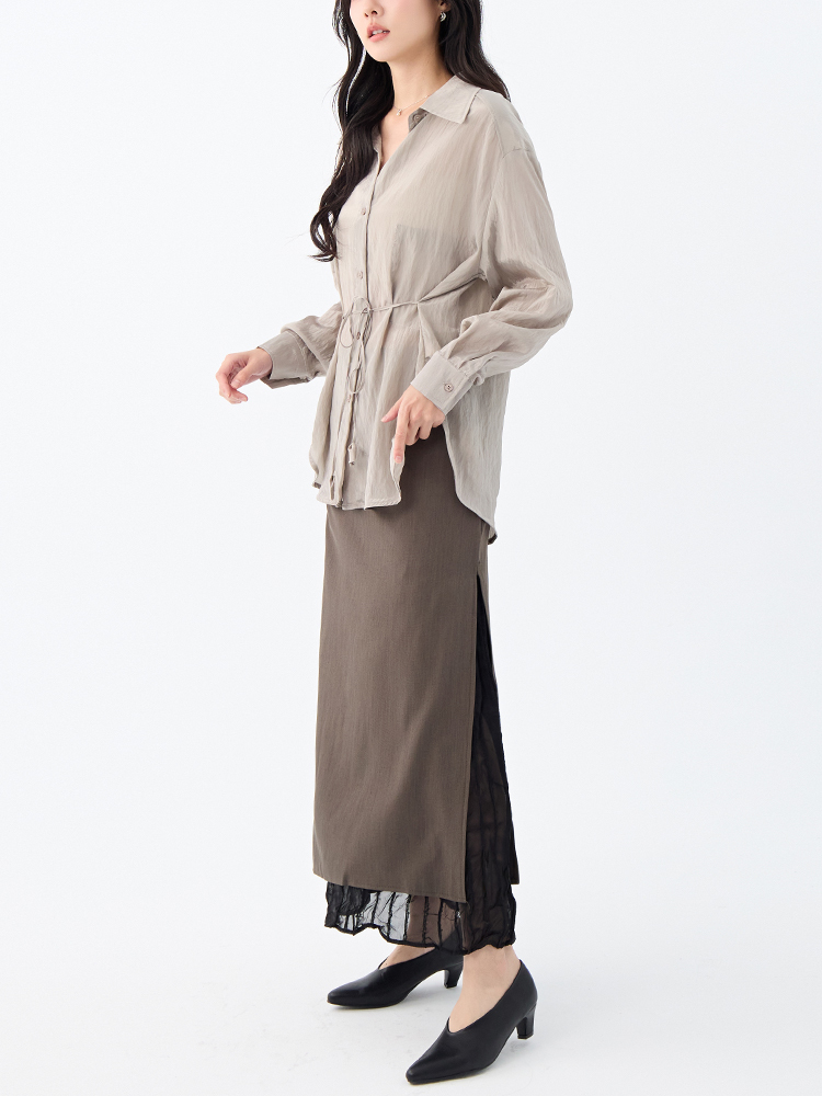 •【OH !HER 水波光澤感寬鬆綁帶襯衫】