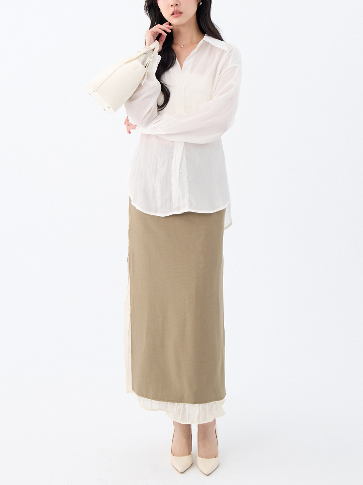 •【 OH!HER 拼接開衩西裝長裙】