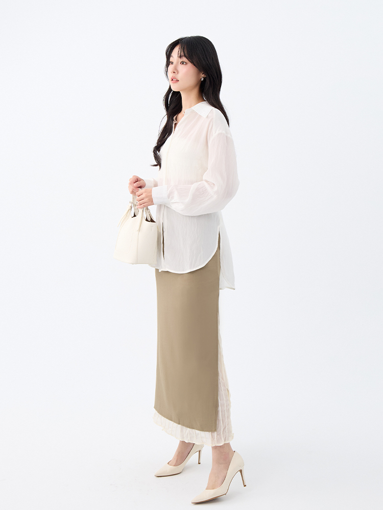 搭配知性美腿開岔設計,顯露修長線條,散發自信氣場,
