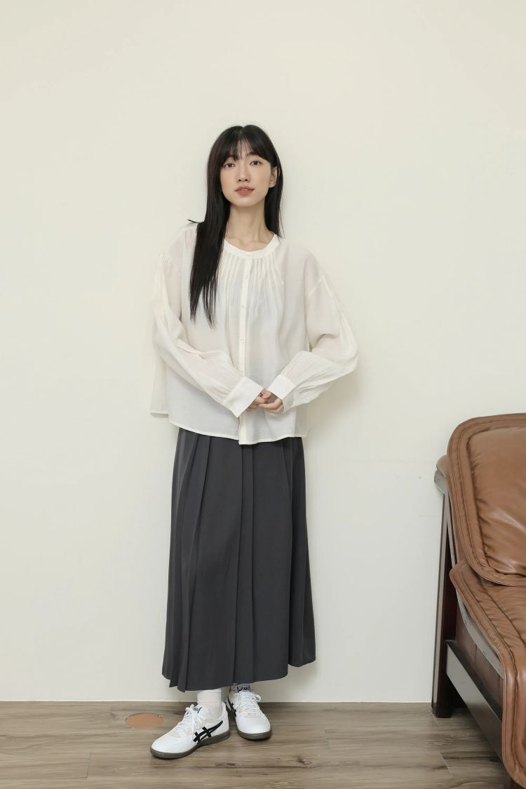 純色壓褶造型 / 透氣天絲材質 / 優雅氣質風格