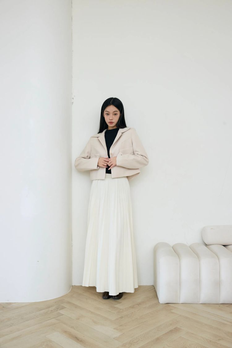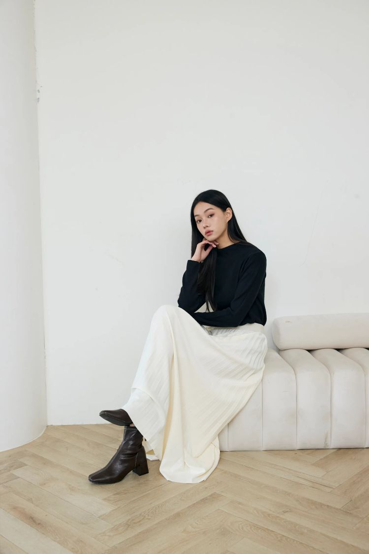 質感立體百褶,延伸下身線條,視覺更纖細
