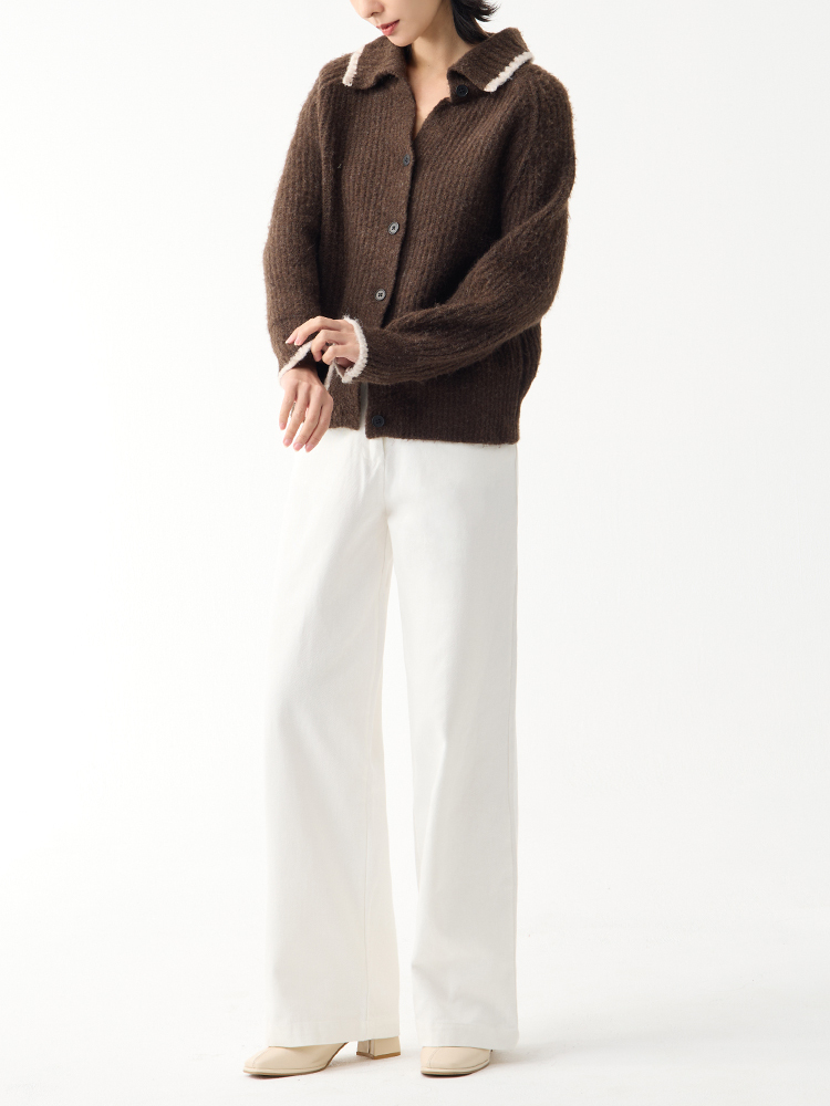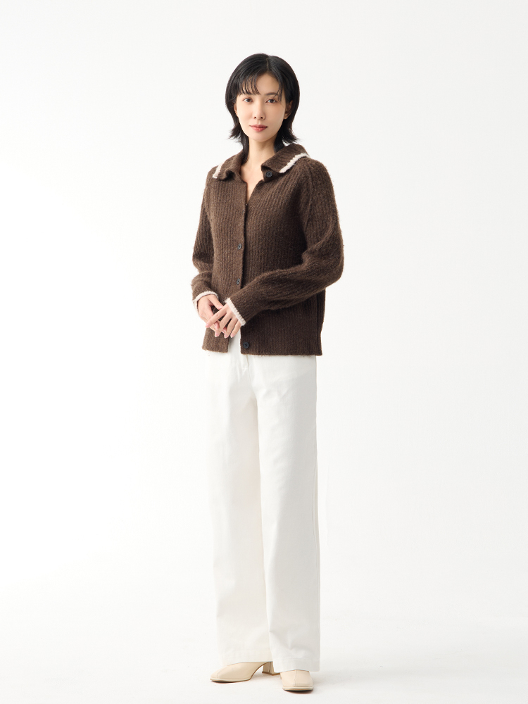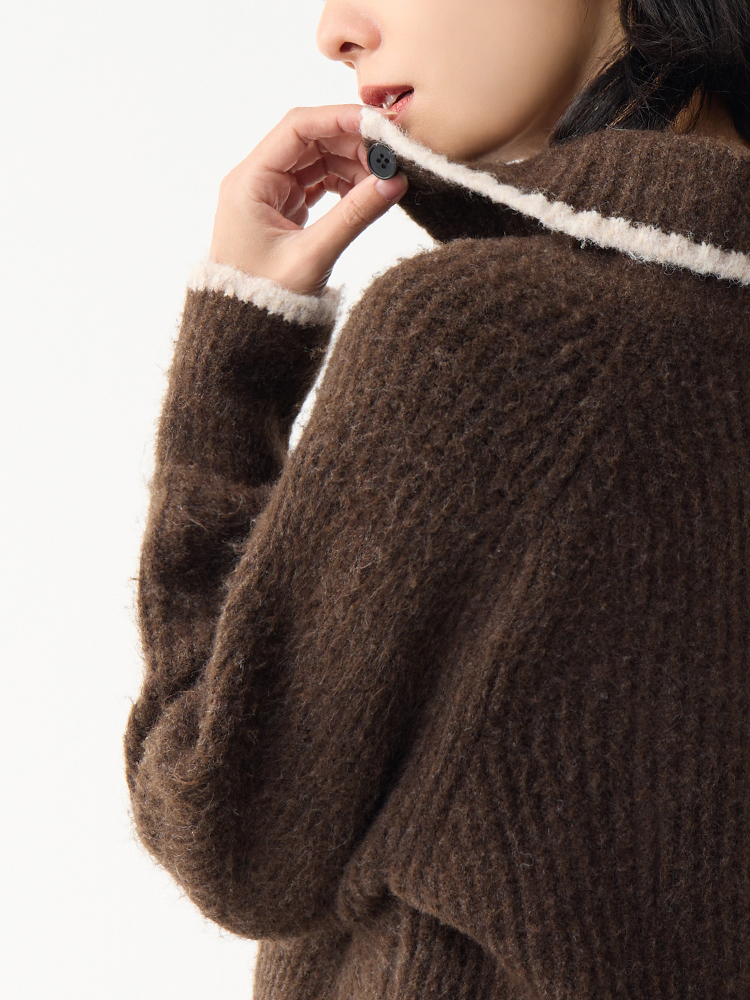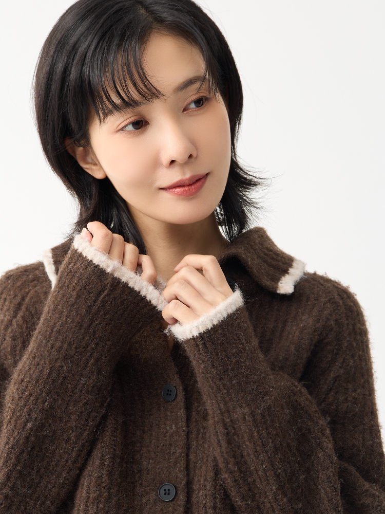 採用撞色拼接領口設計,修飾頸部線條,展現低調精緻的法式時髦風格