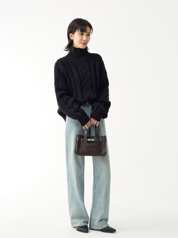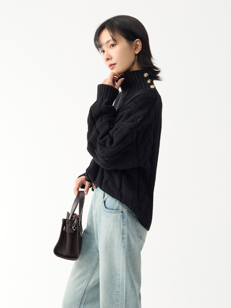 經典麻花編織,細膩工藝結合不規則領口設計,低調中透出設計感