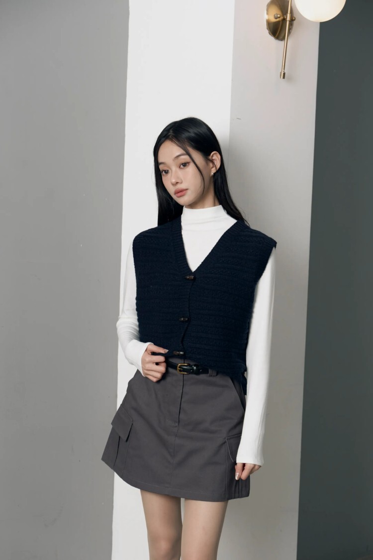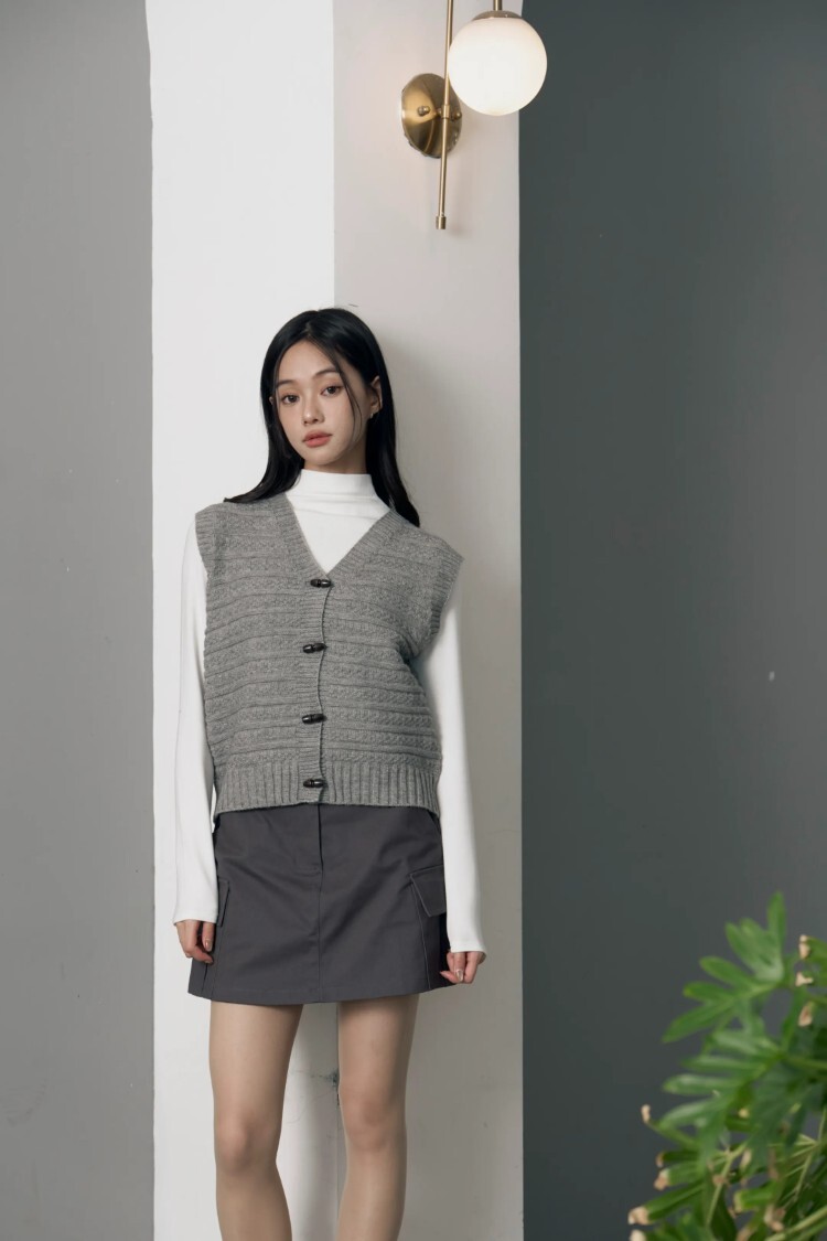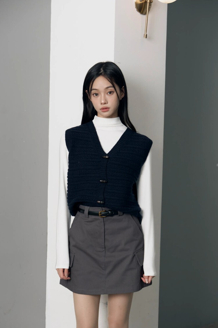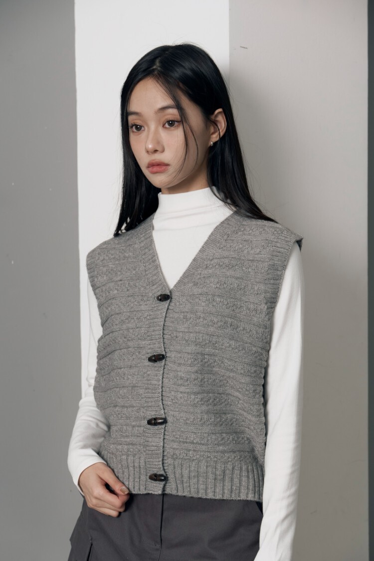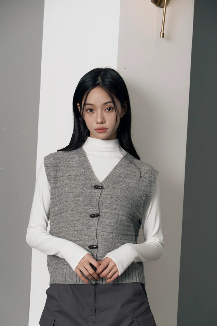 精緻緹花針織結合質感牛角釦,打造韓系優雅風格