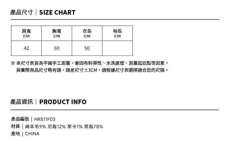 9%羊毛混紡,親膚柔軟,保暖實穿