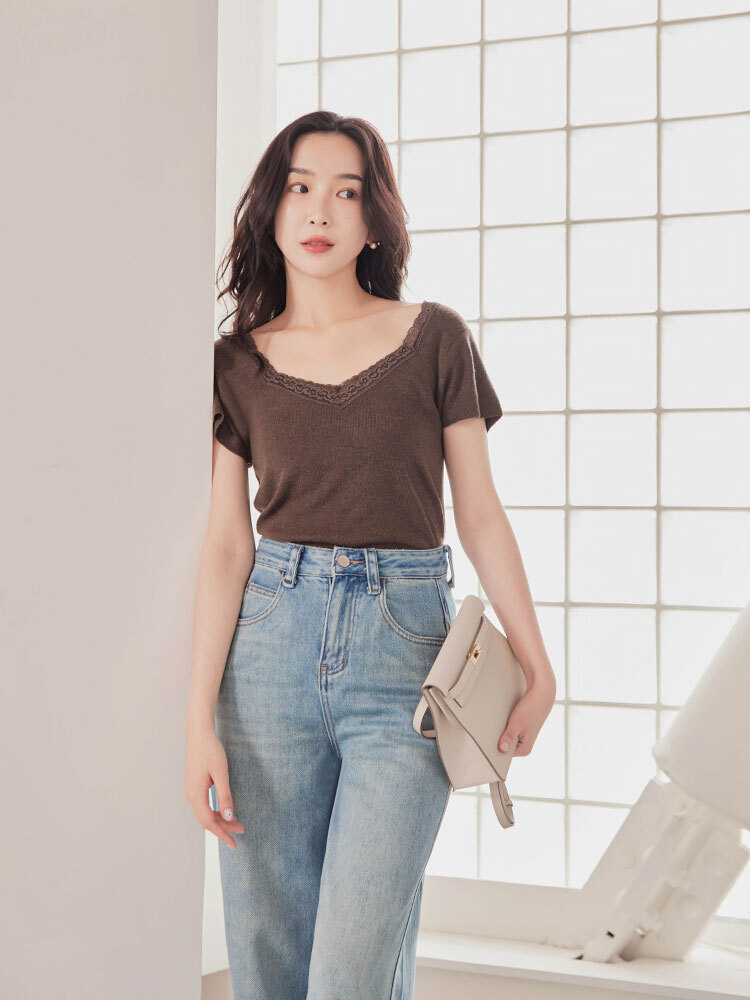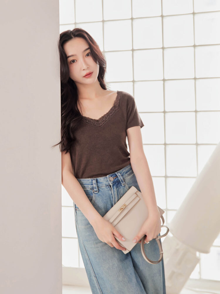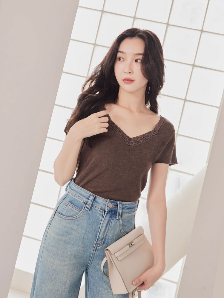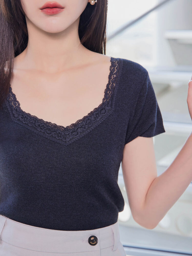 質感蕾絲點綴,三分袖設計修飾手臂線條,展現溫柔魅力