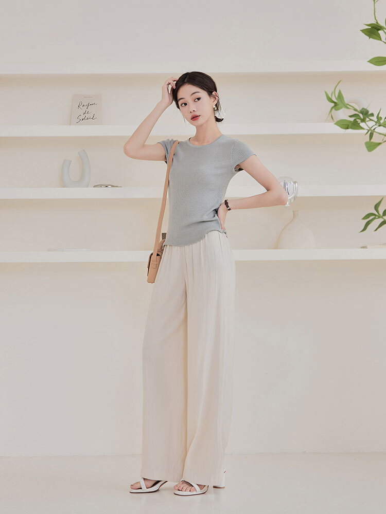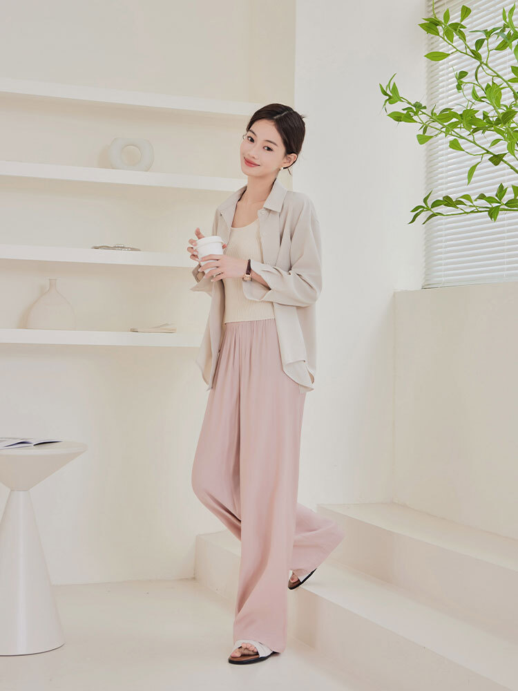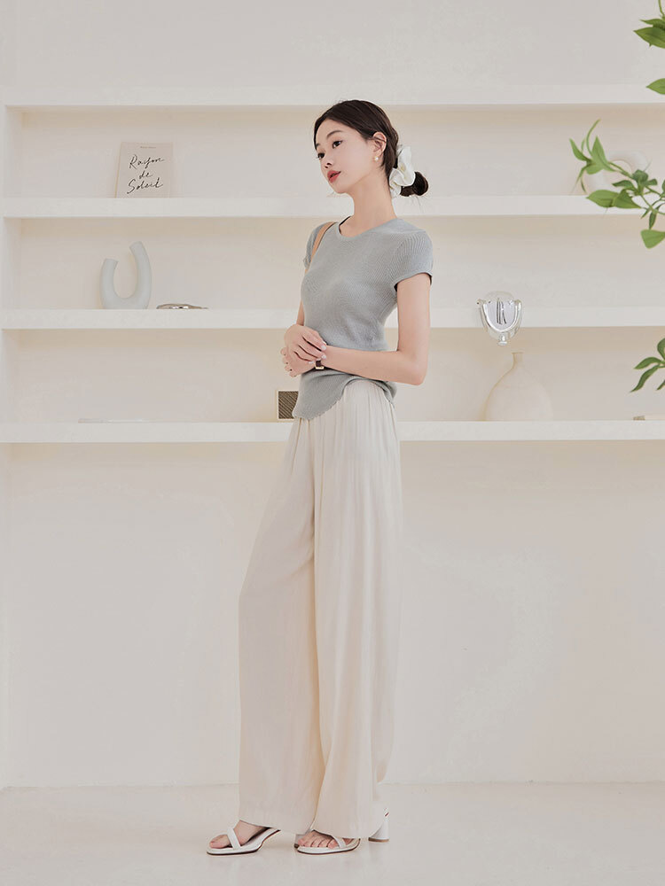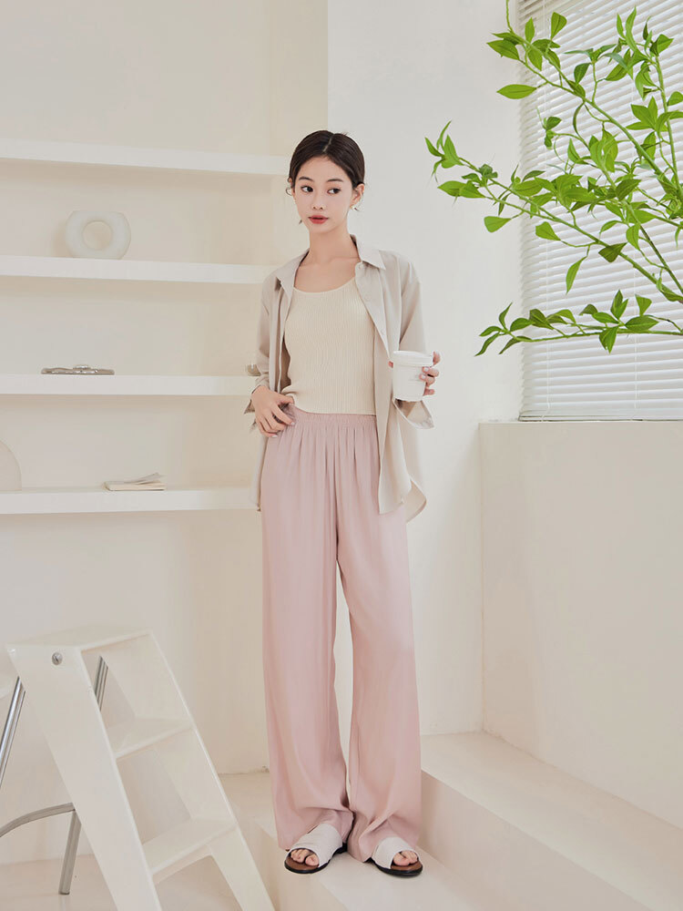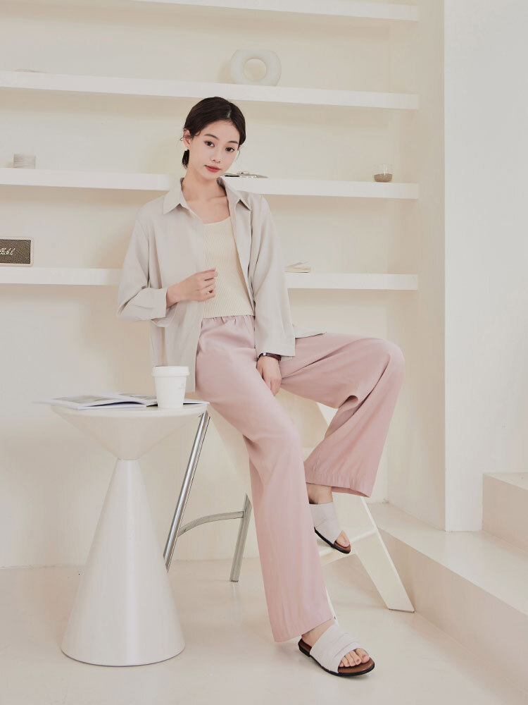 2509 輕柔感鬆緊直筒休閒褲