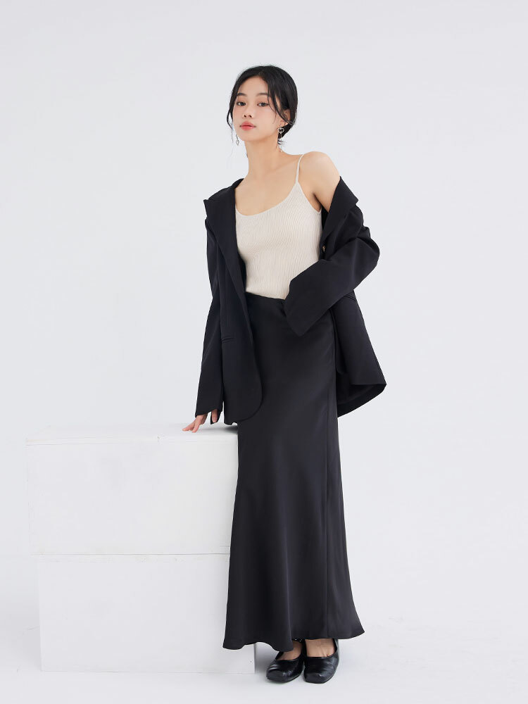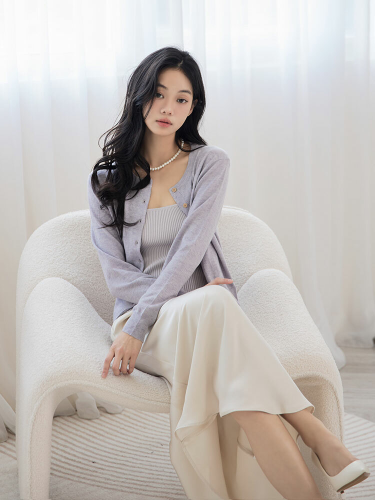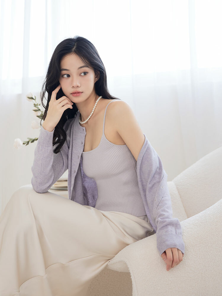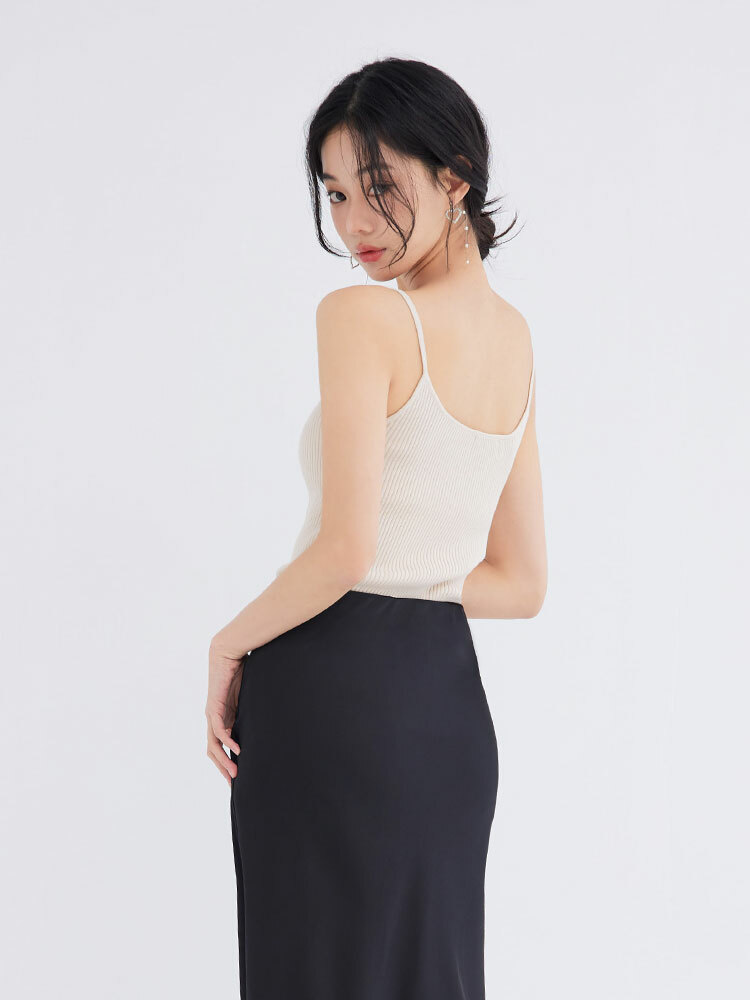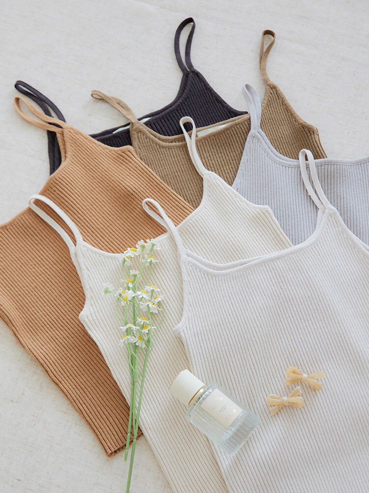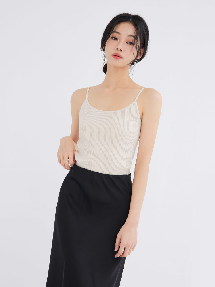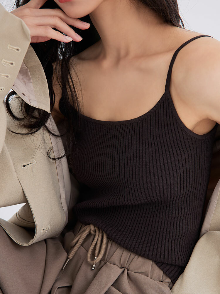 細肩圓領設計修飾上身線條