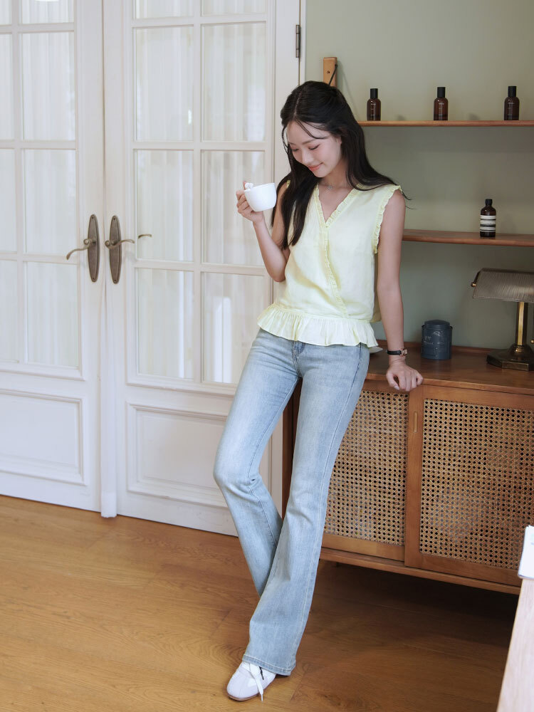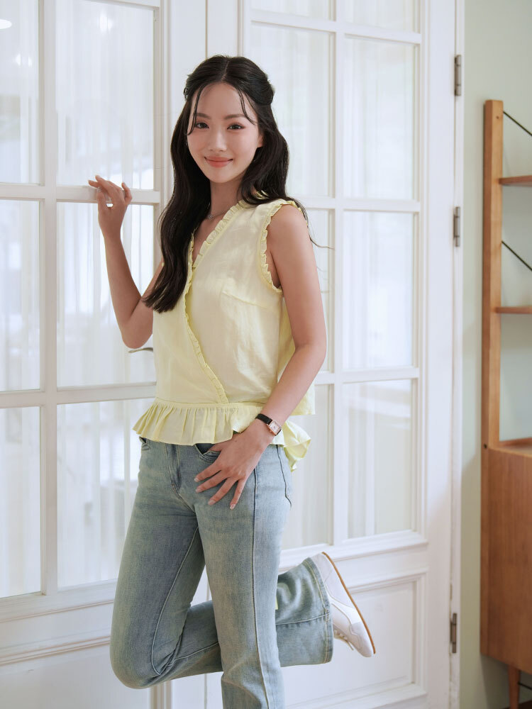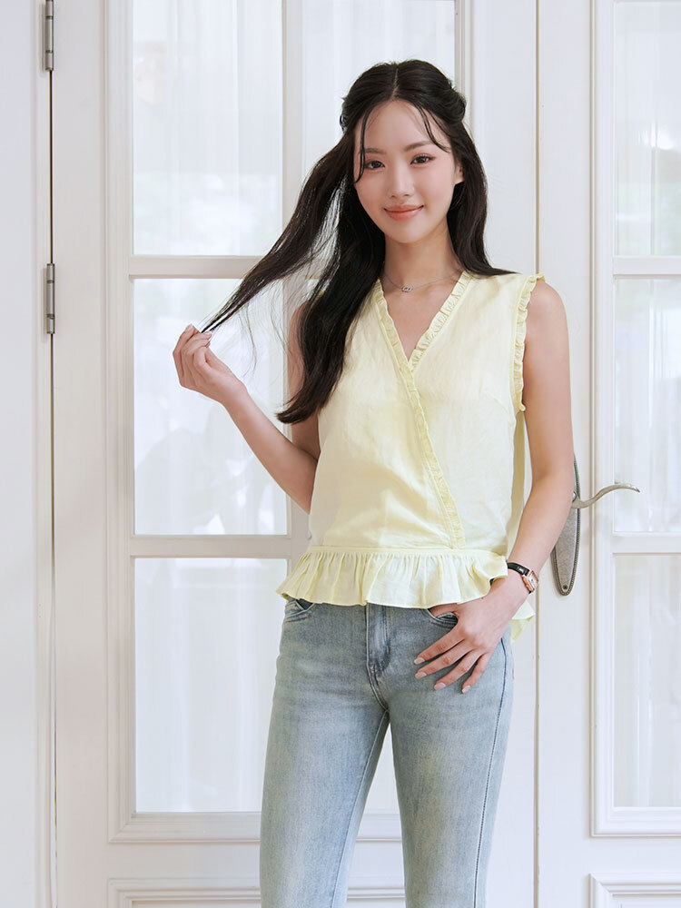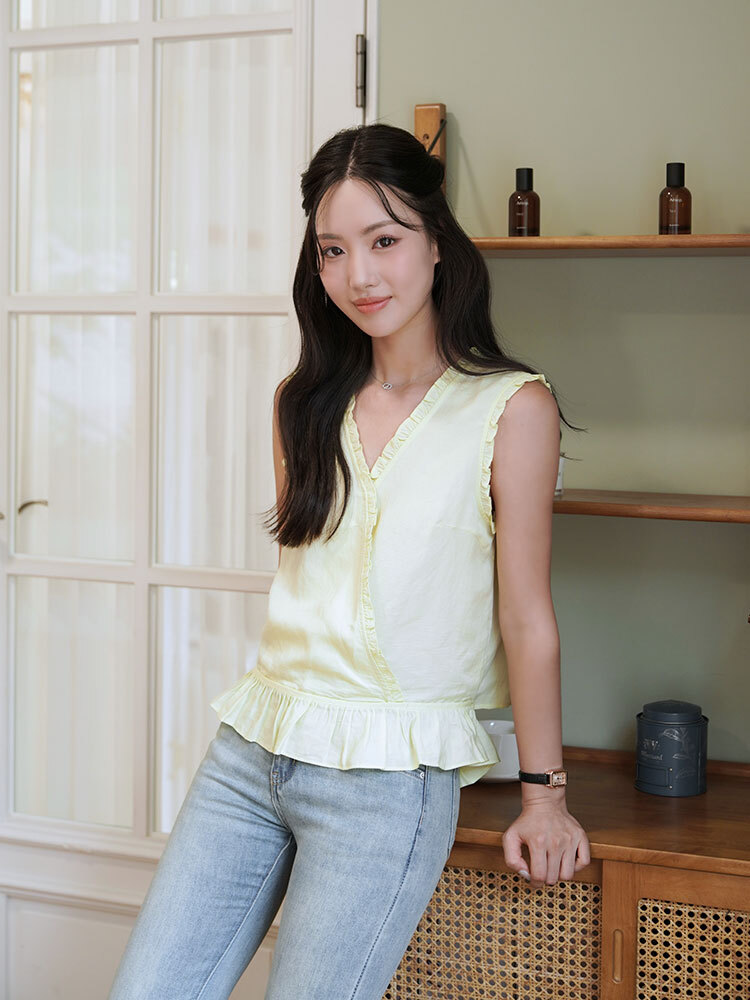 2509 甜美荷葉邊綁帶天絲無袖上衣