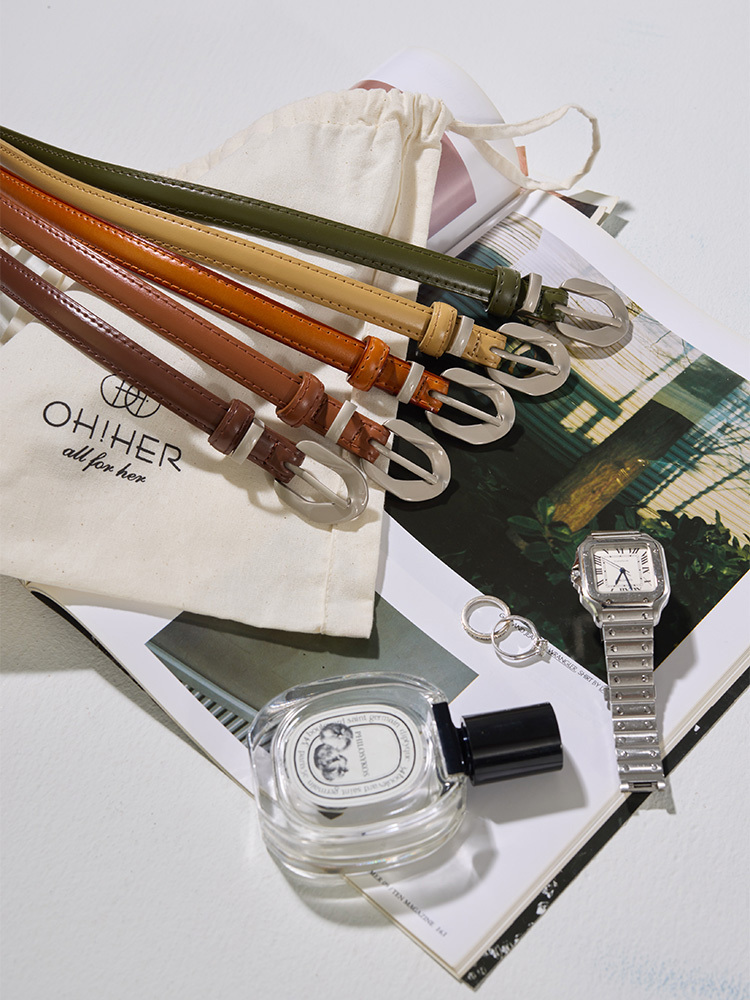 亮銀氣質真皮細款皮帶17238