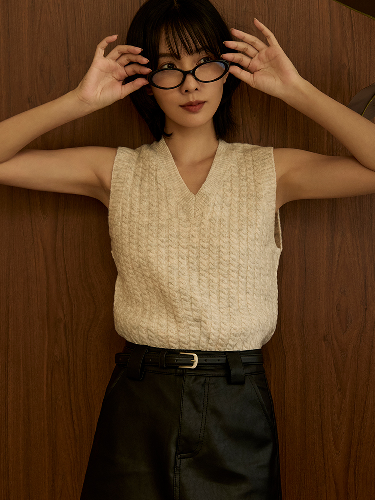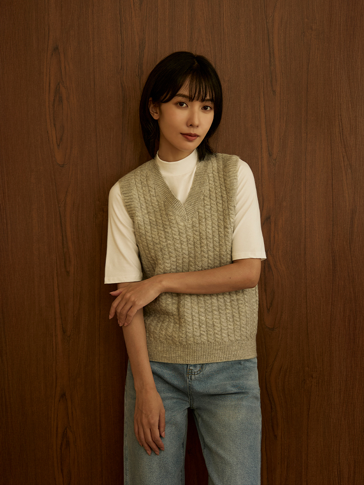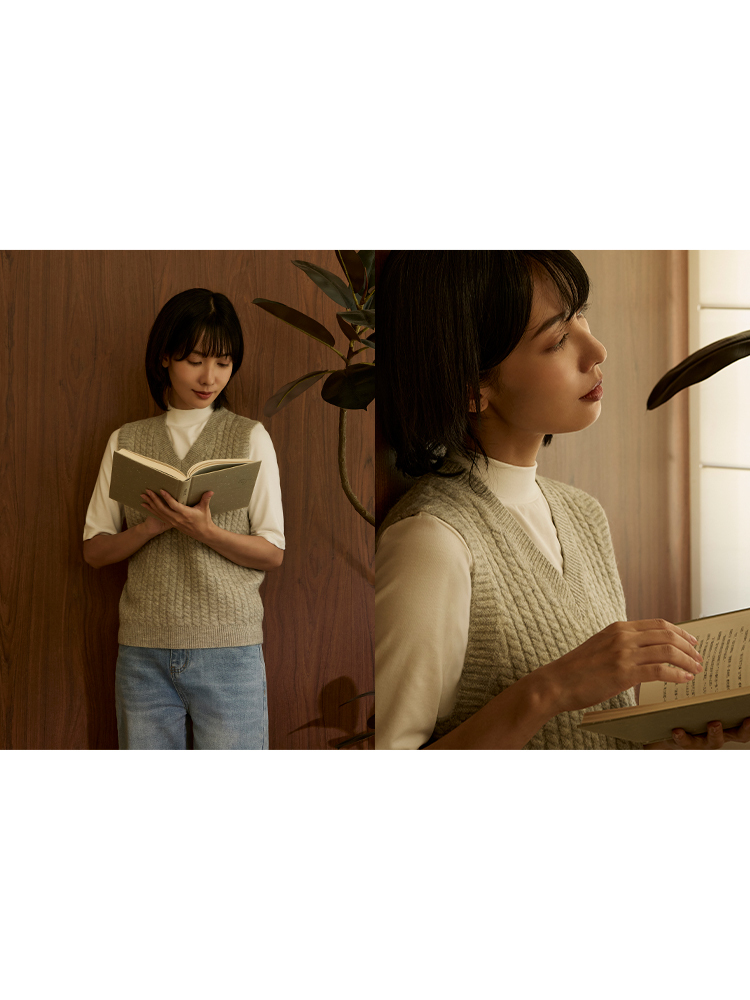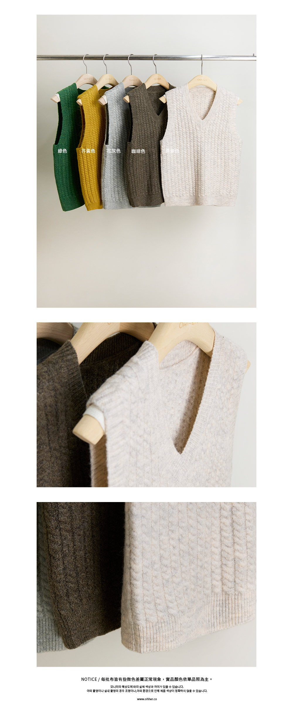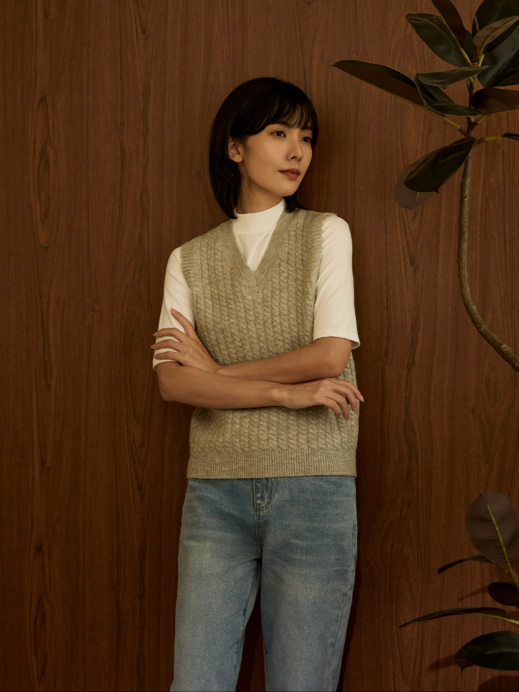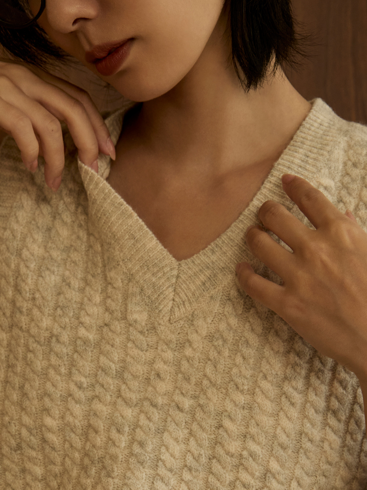 經典麻花編織紋理,結合柔和V領設計,多變穿搭輕鬆打造