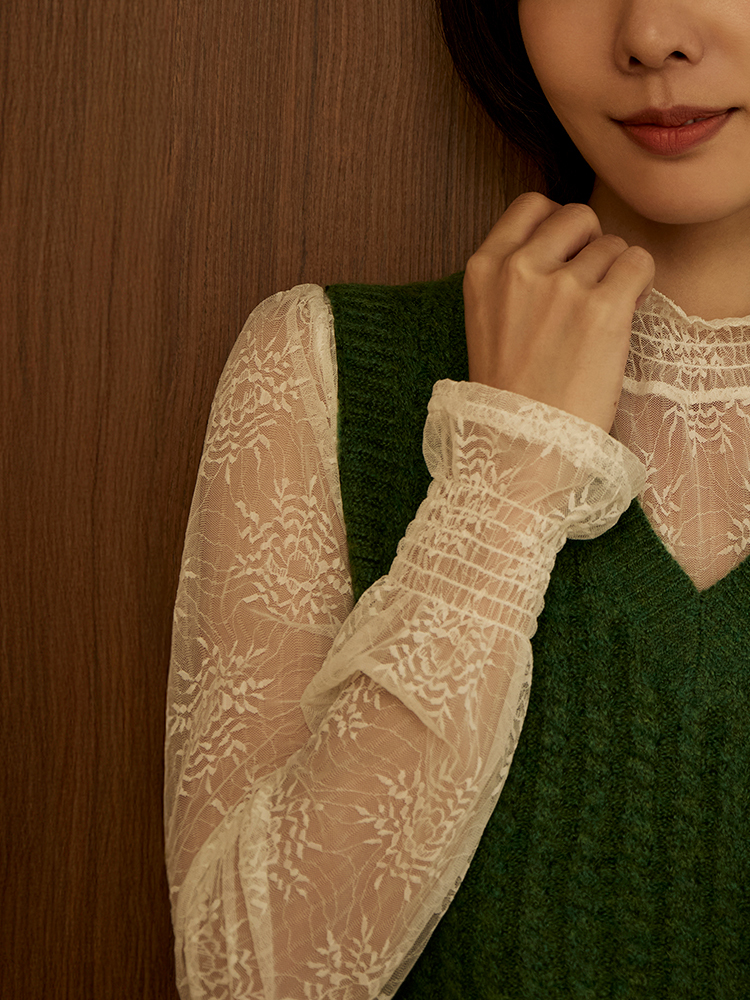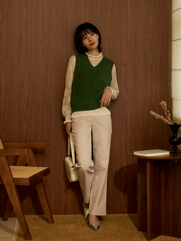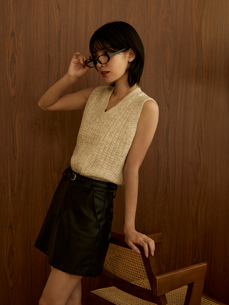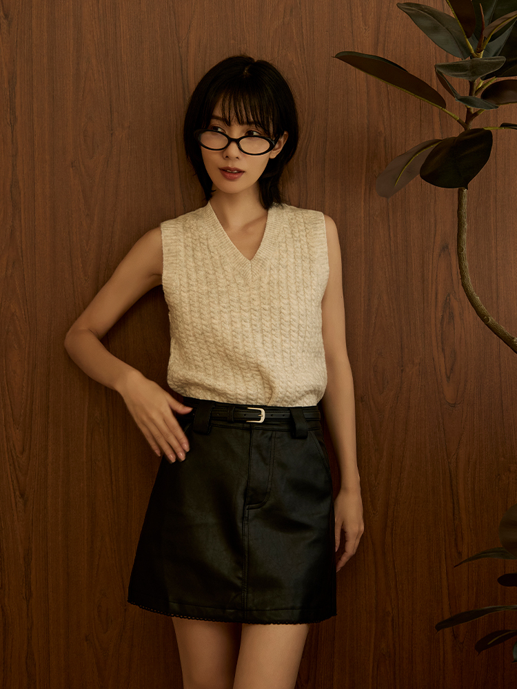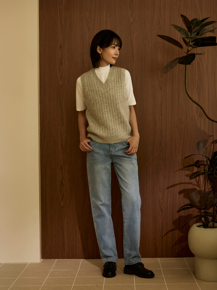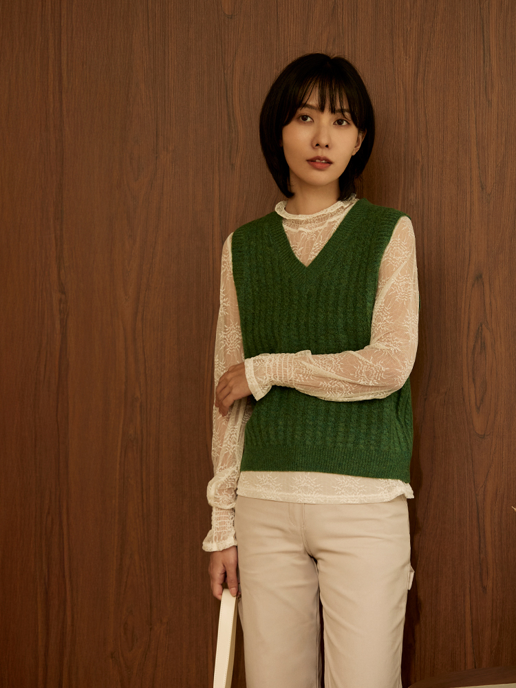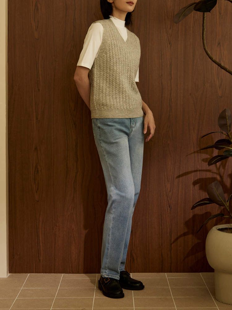 經典麻花編織紋理,結合柔和V領設計,多變穿搭輕鬆打造