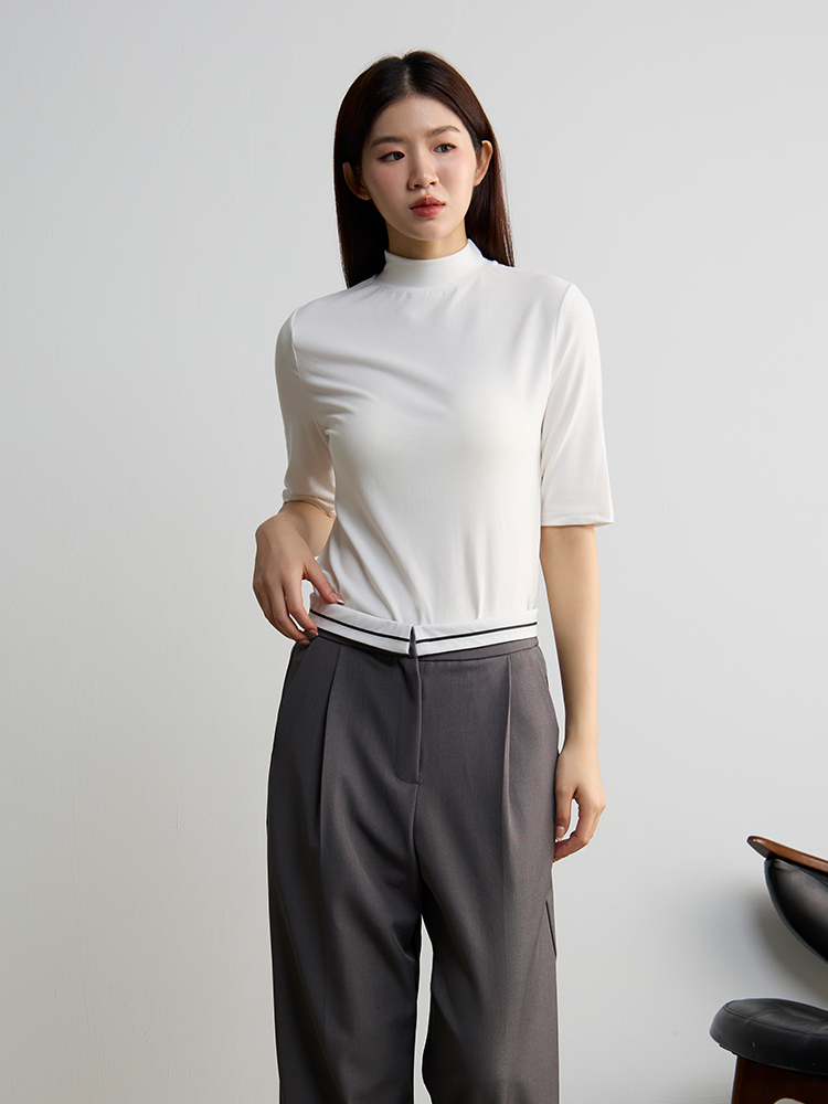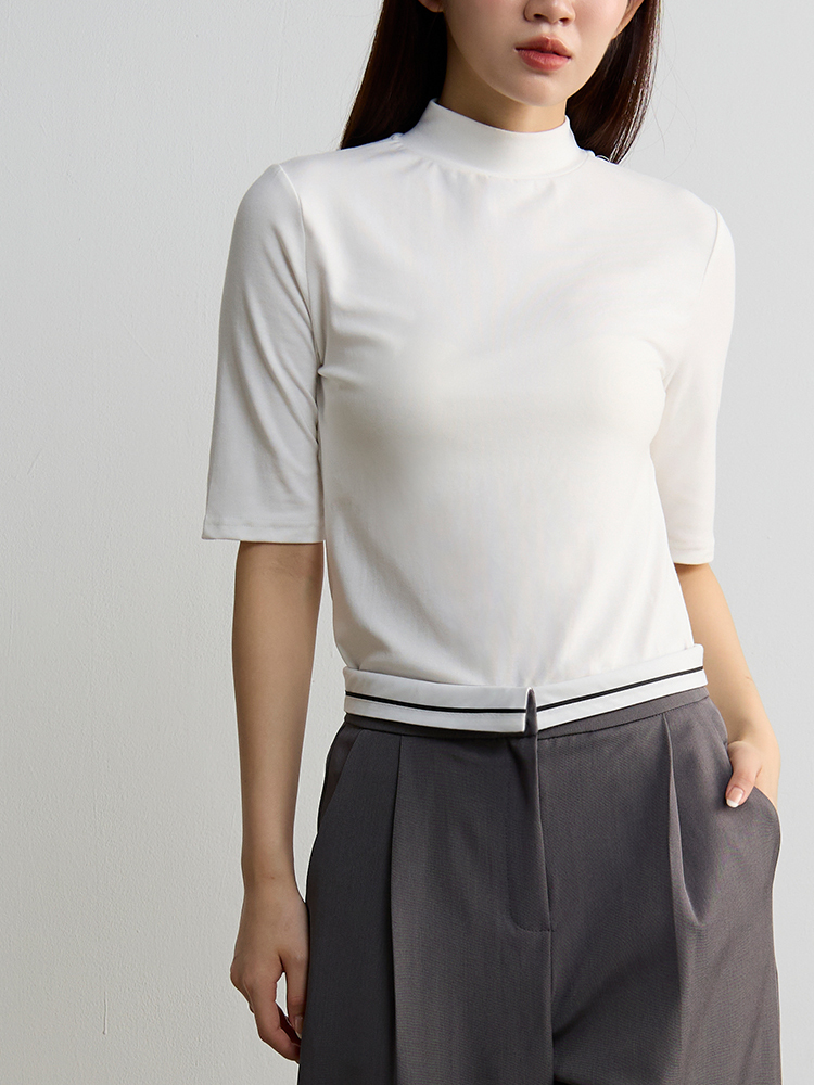 微立領剪裁與俐落短袖設計,簡約中帶設計感,整體線條更修身