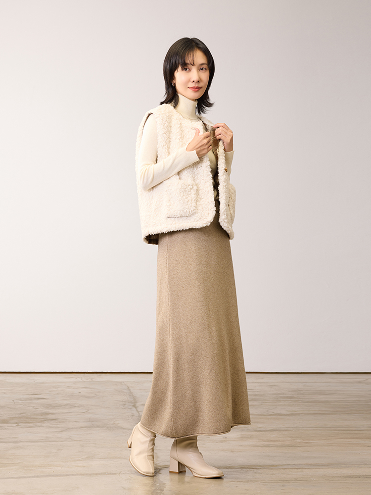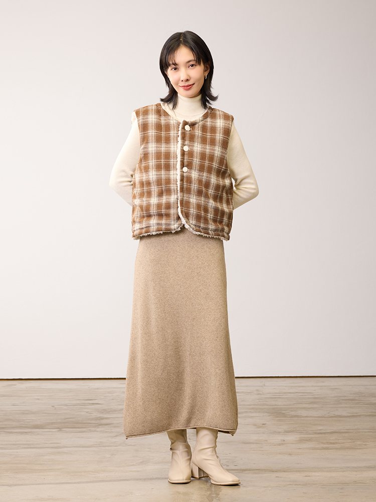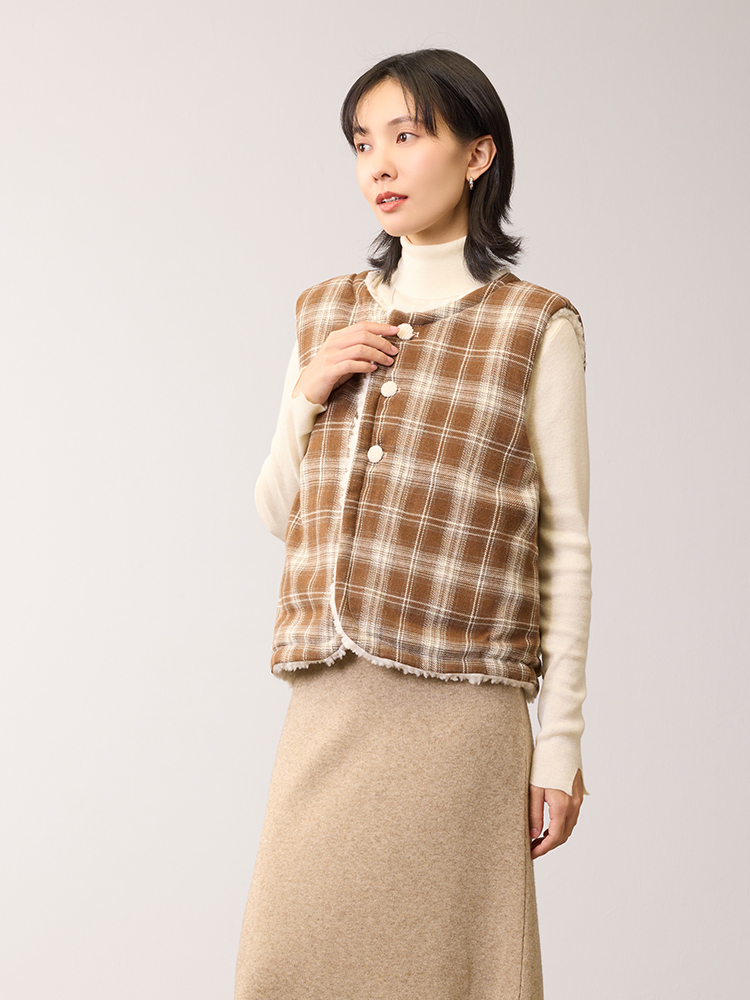 結合蓬鬆羊羔毛、溫潤棕色格紋,靈活切換造型