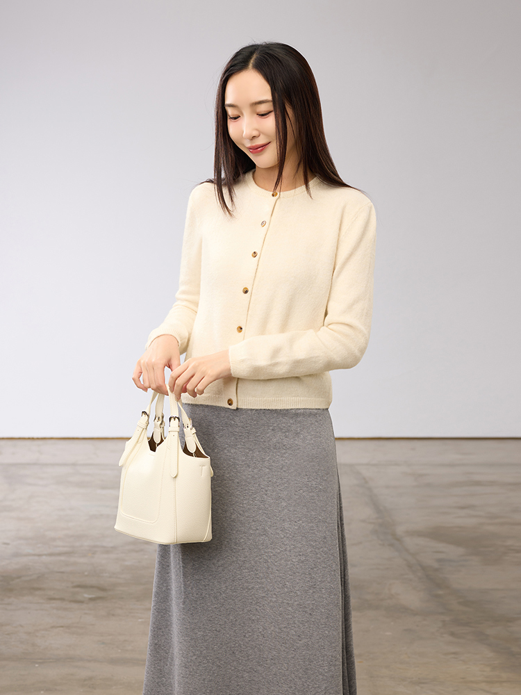 細緻排釦薄款針織外套(6.5%棉羊毛)