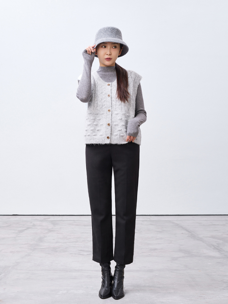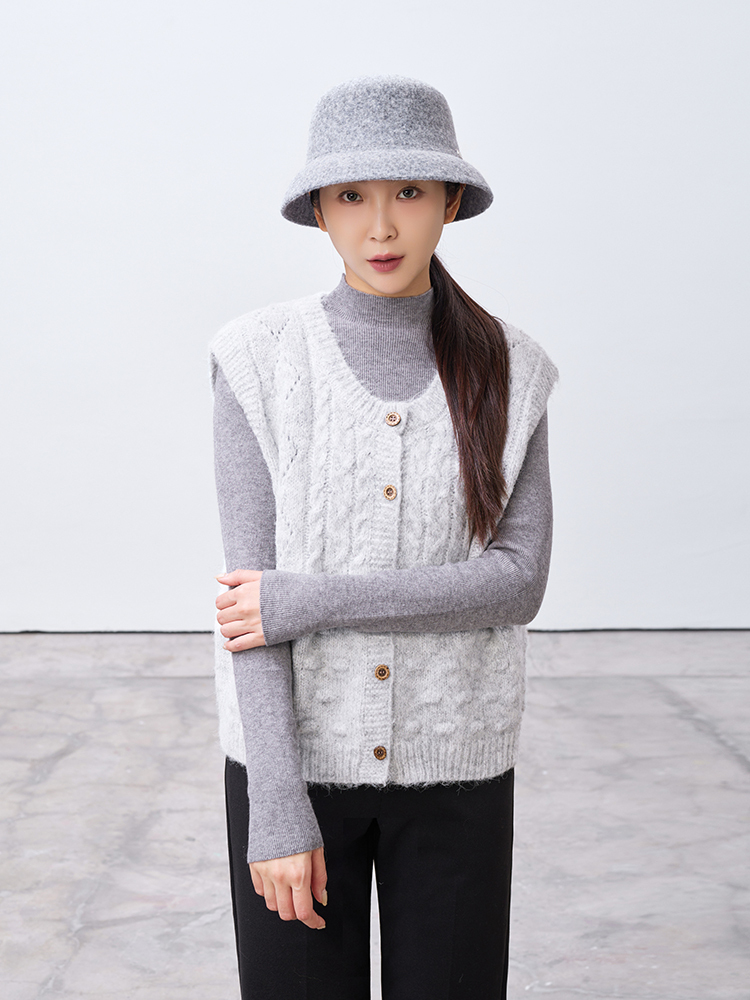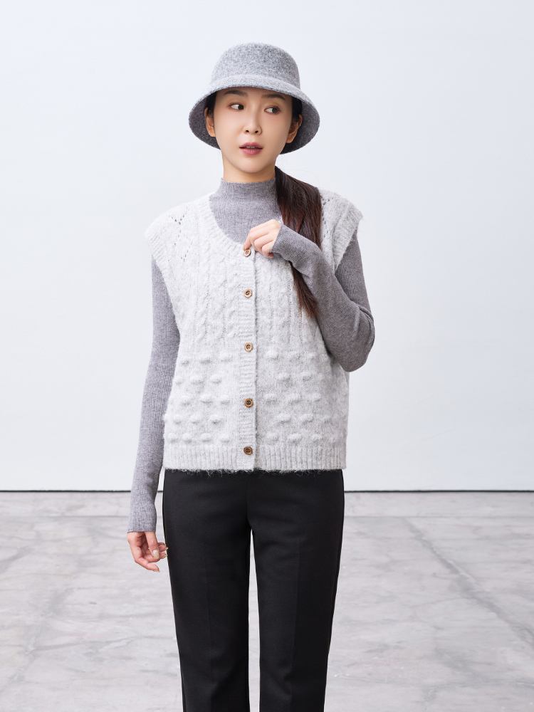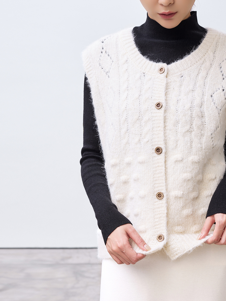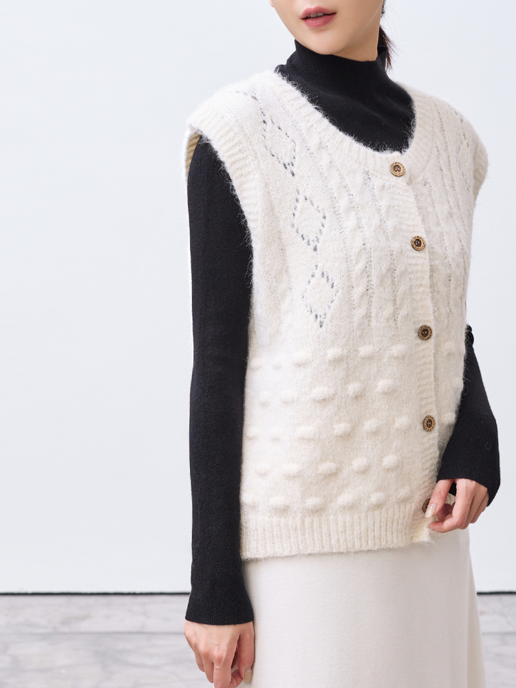 小毛球鏤空菱格針織背心(9%羊毛)