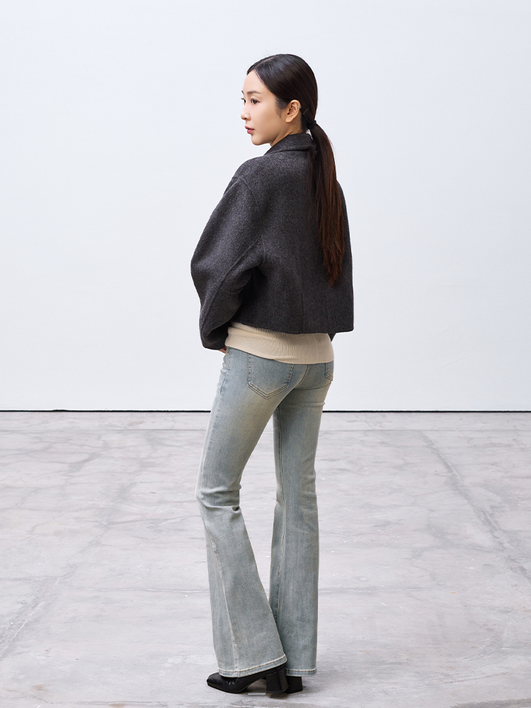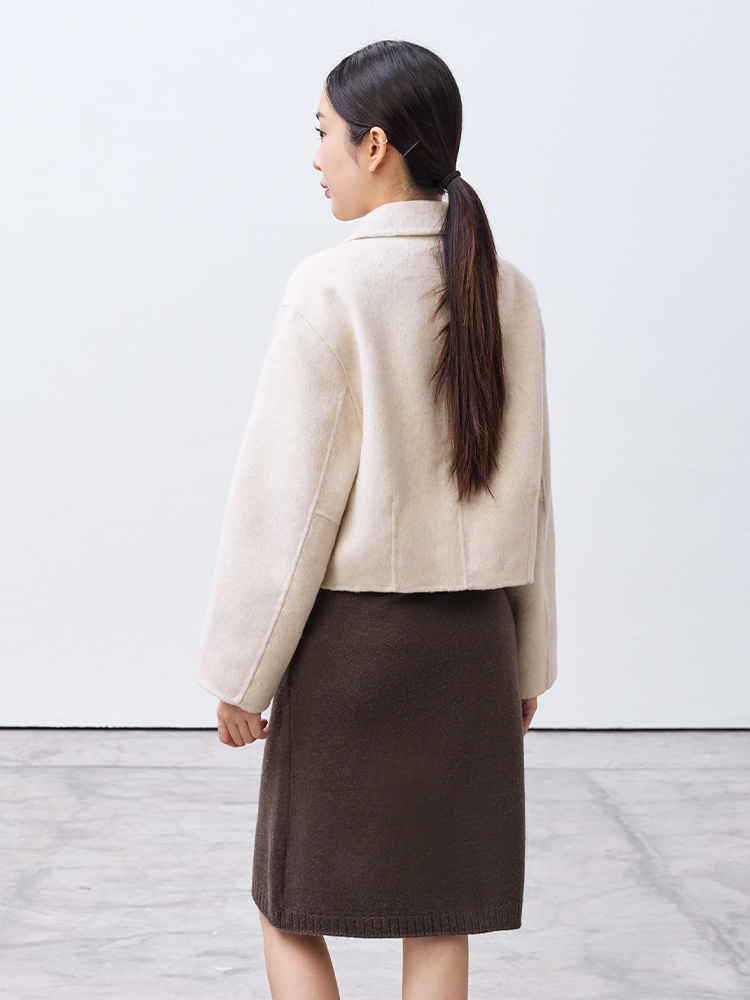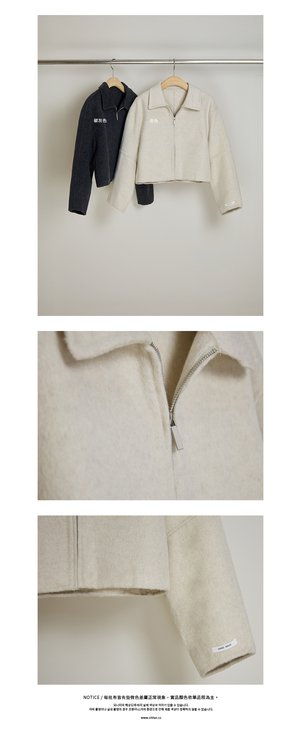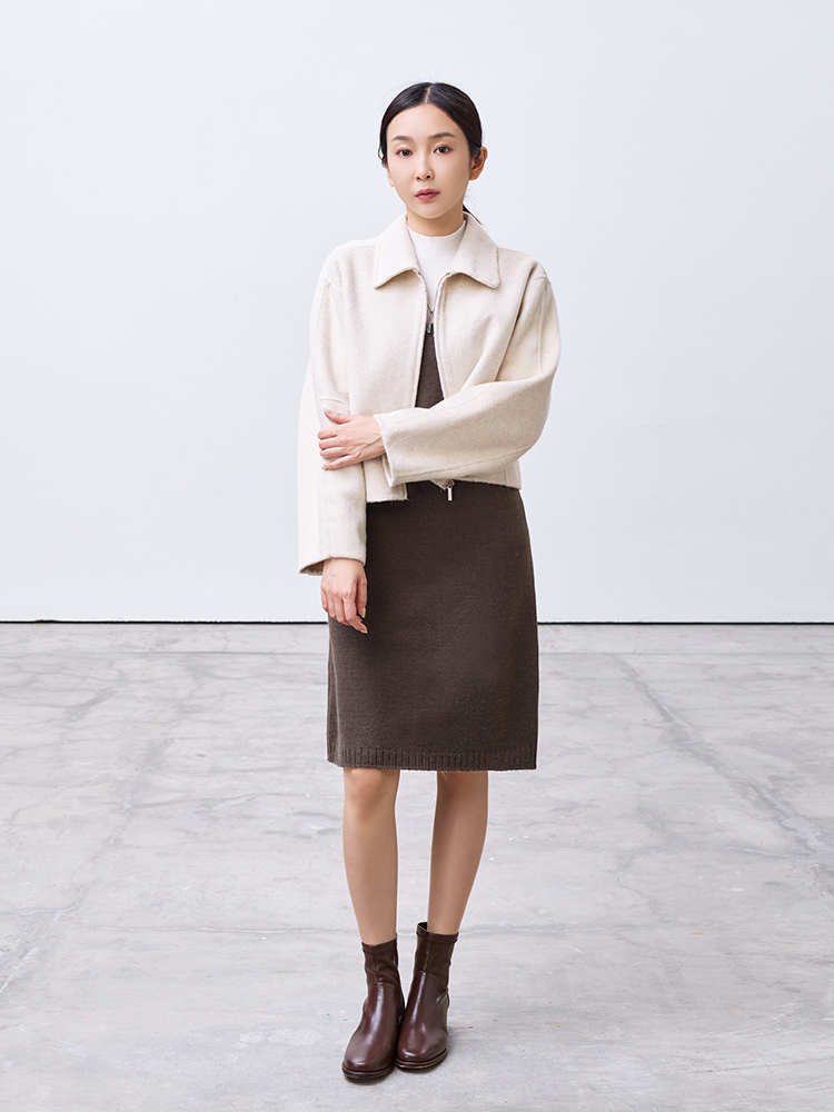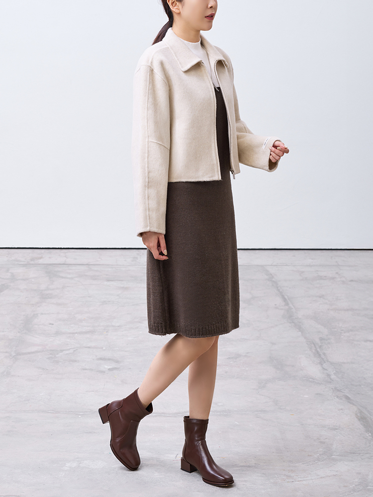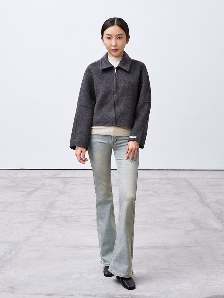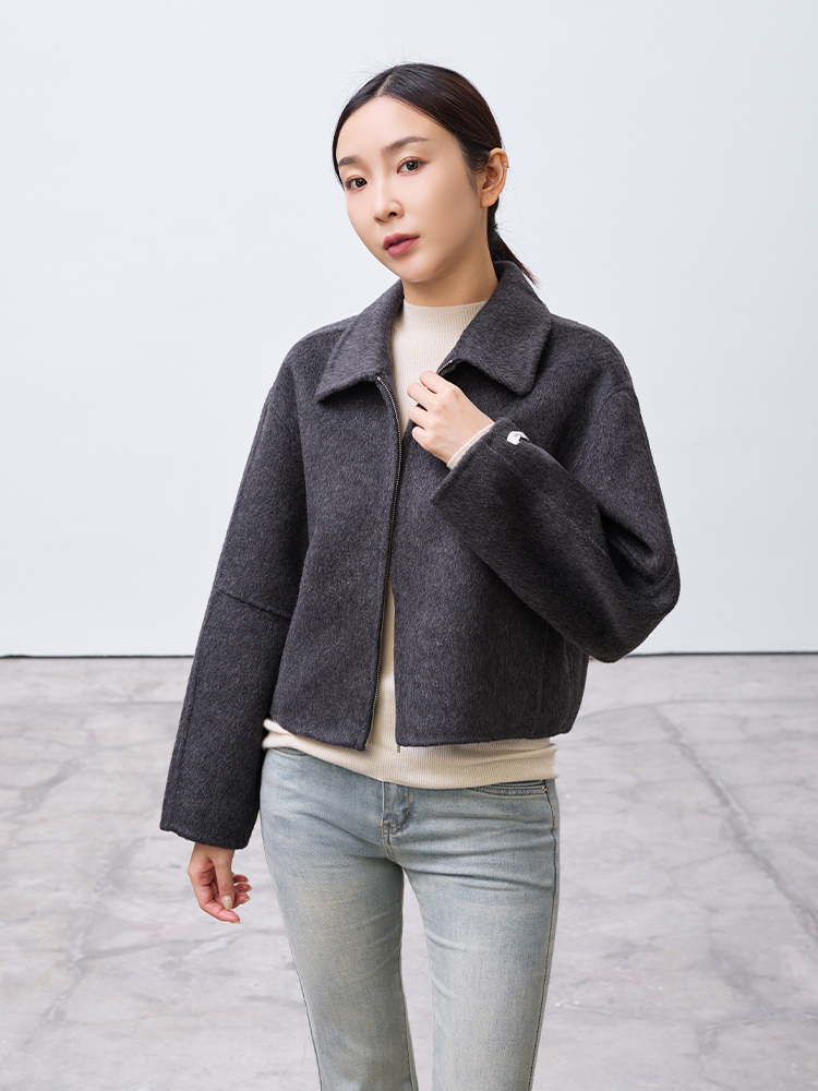 Cute!手工製翻領短版拉鍊外套(羊毛70%)