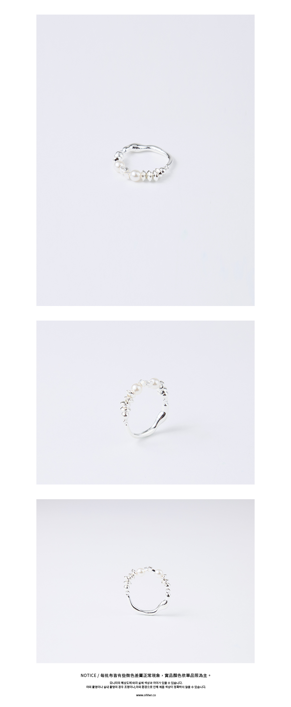 捨棄了平滑的傳統戒圈,以大小錯落的純銀串珠 築起一道生動的風景,