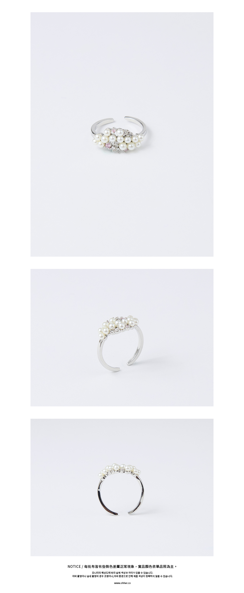 細緻珍珠交織成柔和輪廓,點綴其間的彩鑽,隨光輕閃,