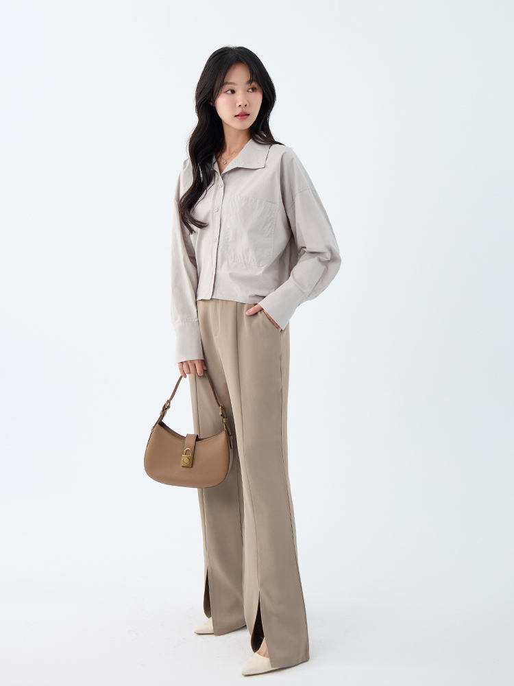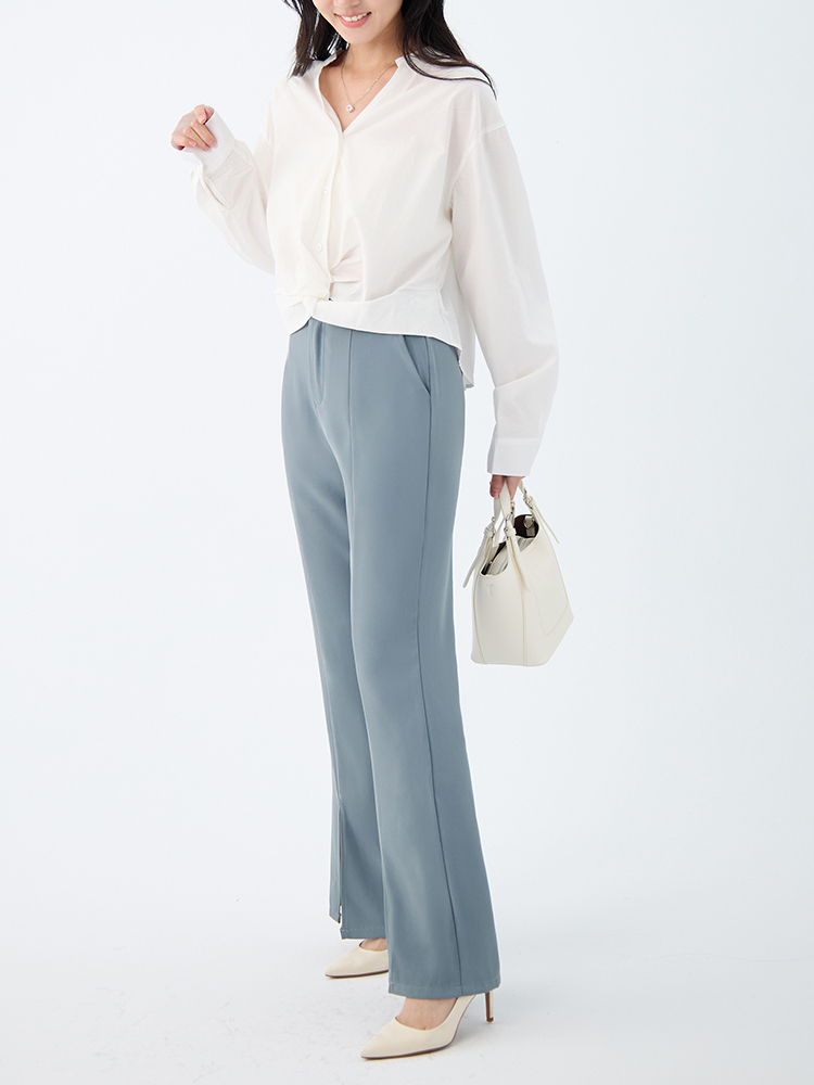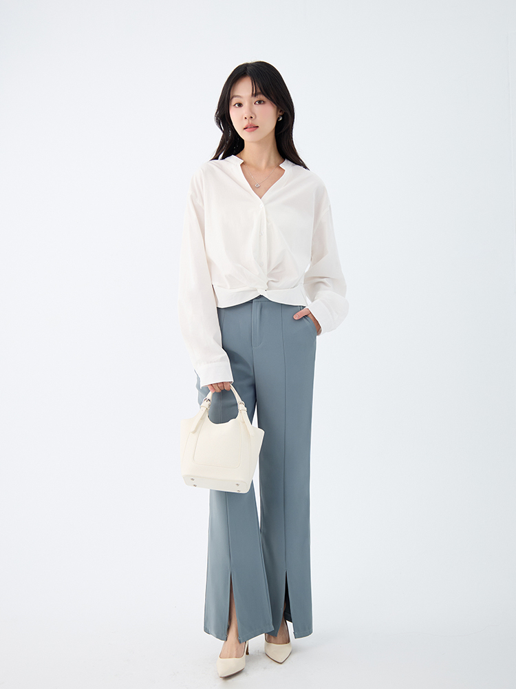 俐落剪裁結合時尚前開衩設計,微微露出腳踝,拉長下身比例