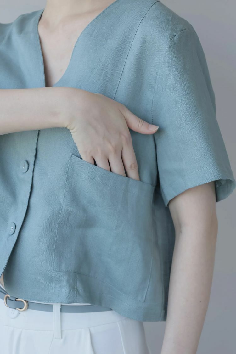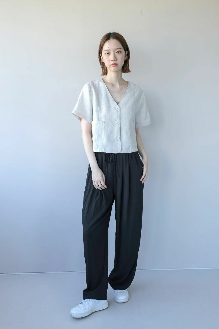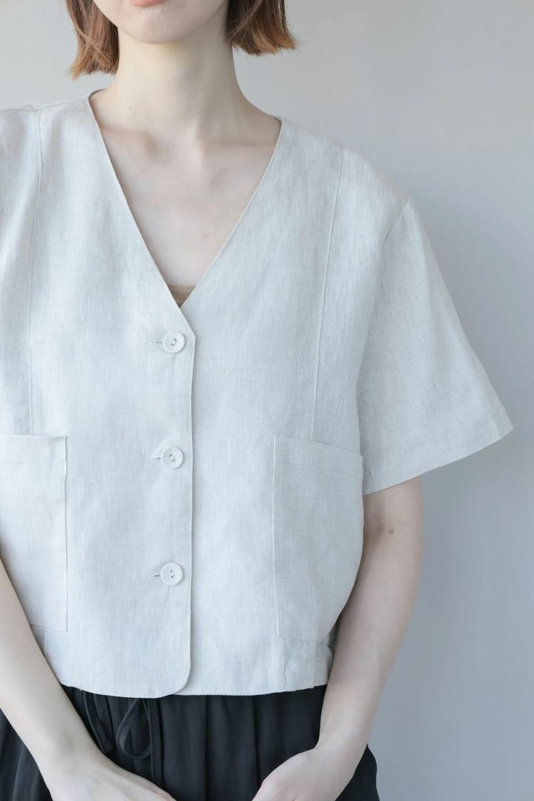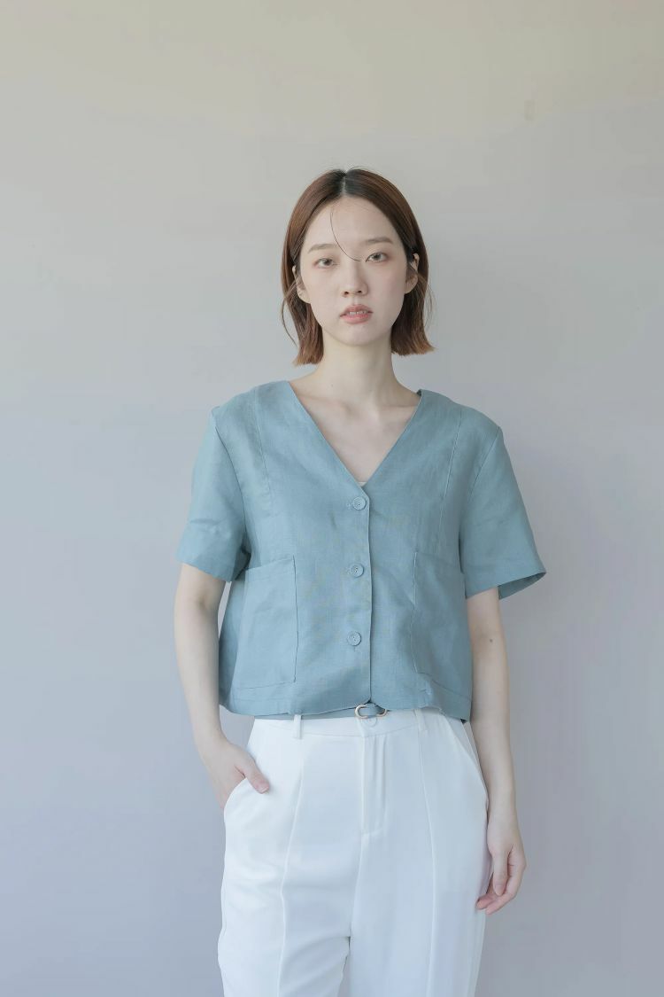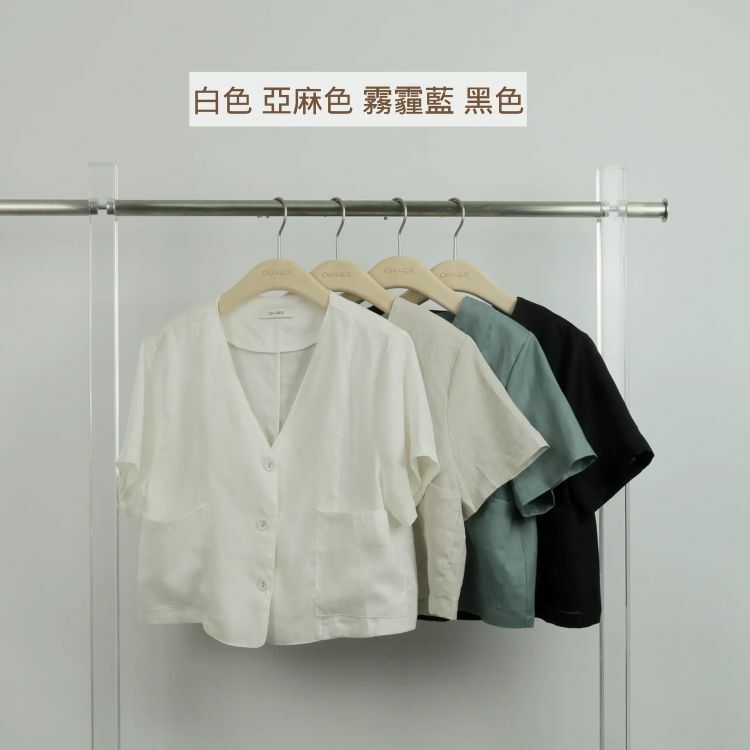 2509 OH!HER 純亞麻V領短袖西裝外套