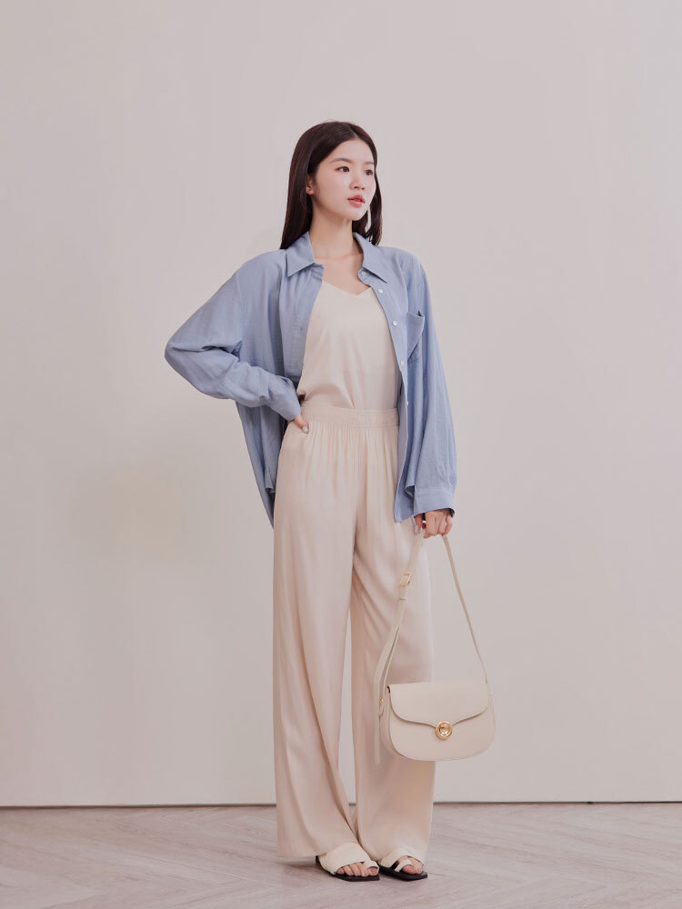 寬鬆下擺弧型剪裁,自由活動不受限,營造輕盈涼感