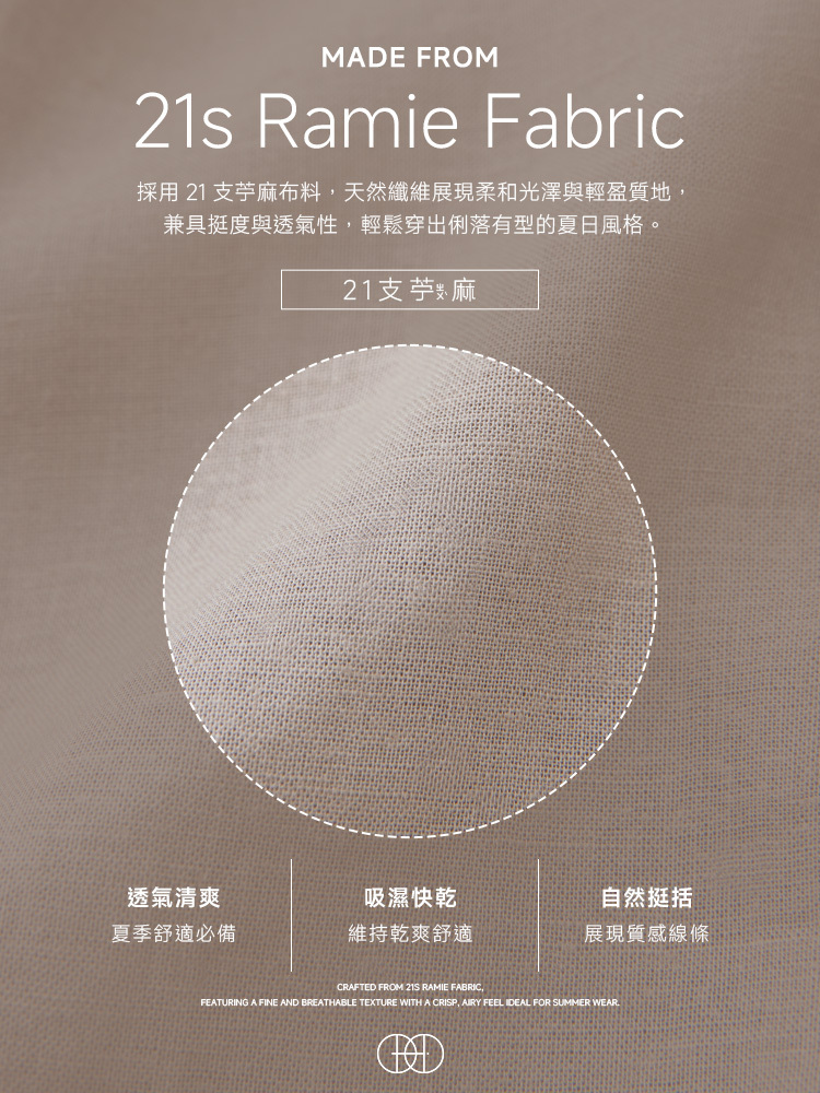 嚴選21支苧麻布料,「挺中帶柔」、「布面天然紋理,乾爽透氣輕巧不厚重」