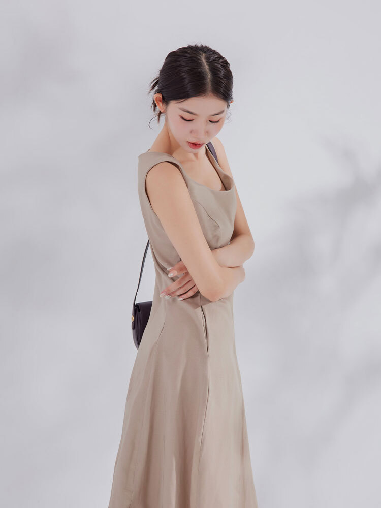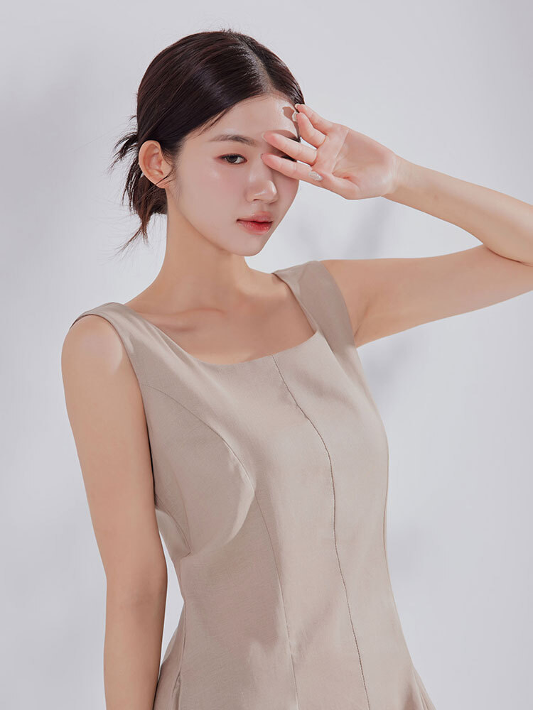 背心式剪裁,壓褶設計,塑造整體曲線,優雅穿出完美比例