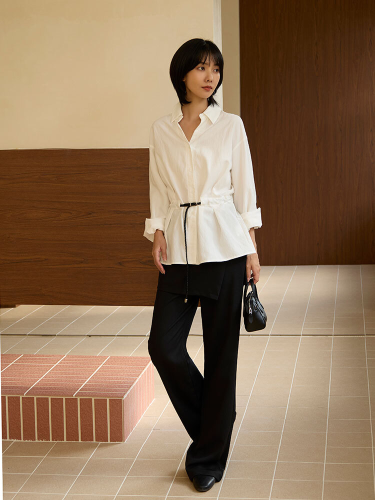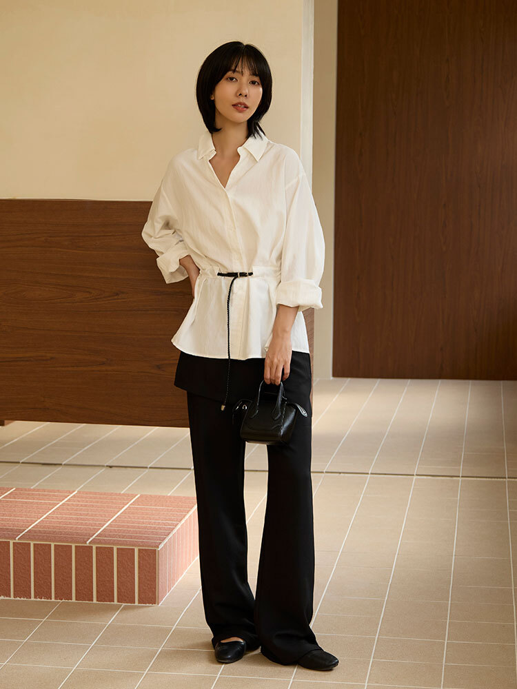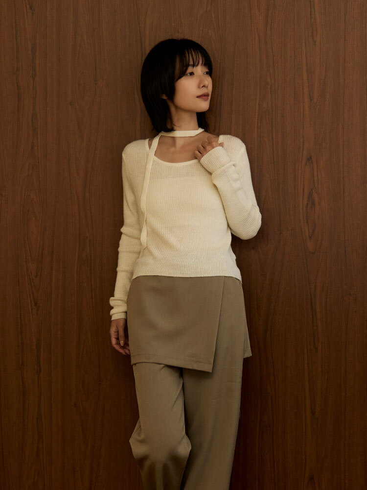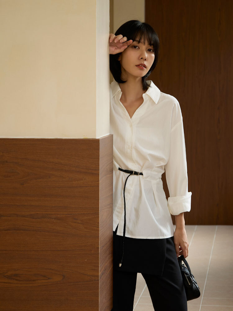 輕柔垂墜布料打造,若隱若現的優雅層次,散發低調卻精緻的韓系氛圍