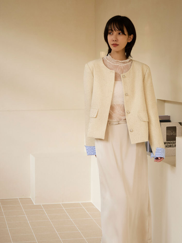 結合法式優雅與現代感輪廓,為經典注入俏皮層次感,舉手投足都散發迷人品味