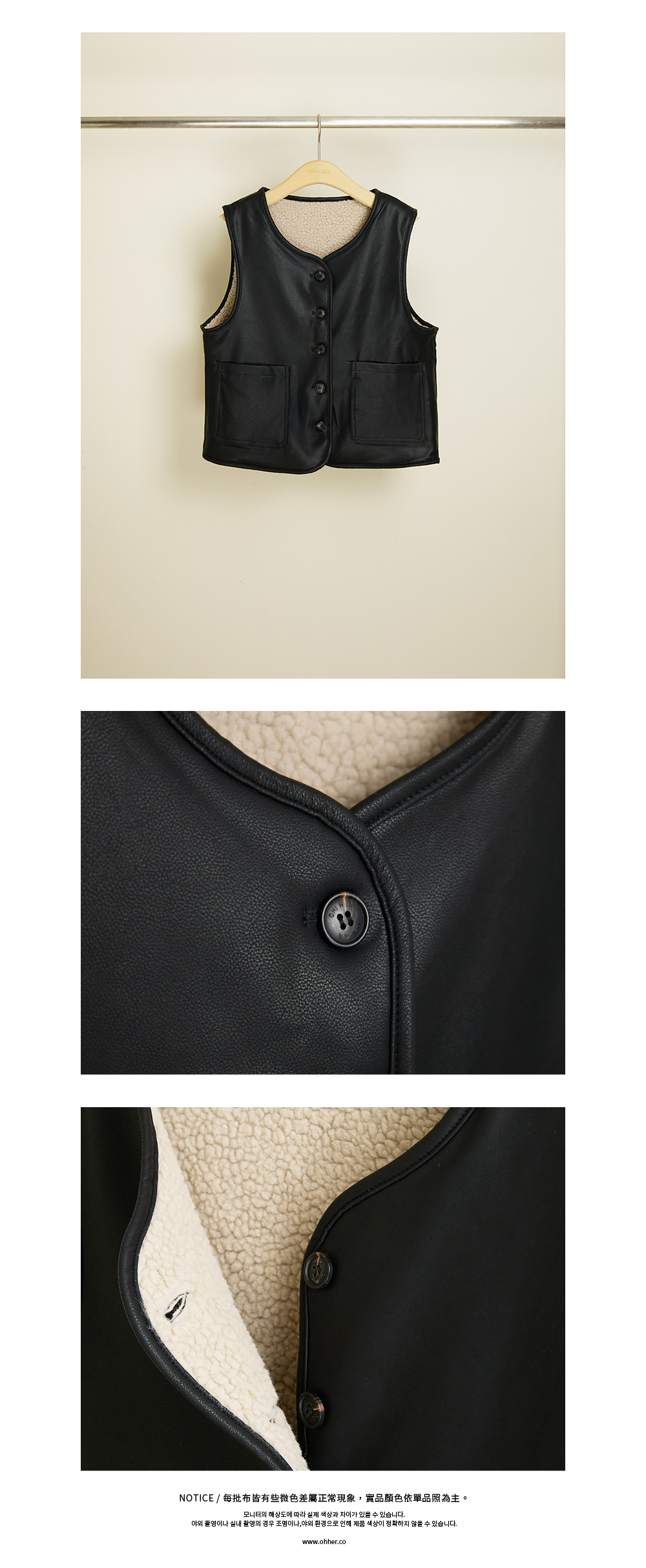 搭配深色 OH!HER 專屬鈕釦,低調沉穩,細節更顯質感