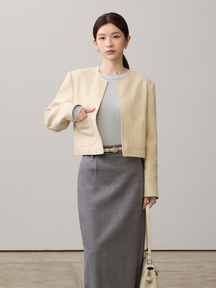 圓領短版剪裁,打造質感俐落風格