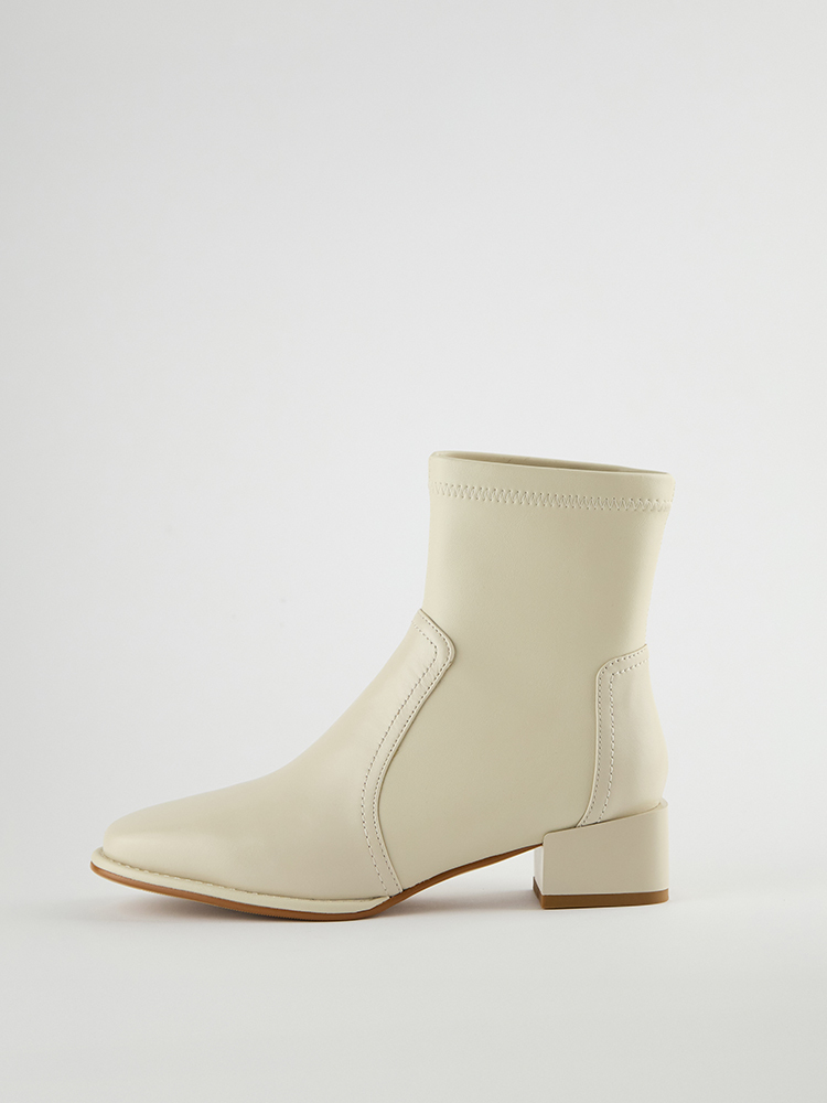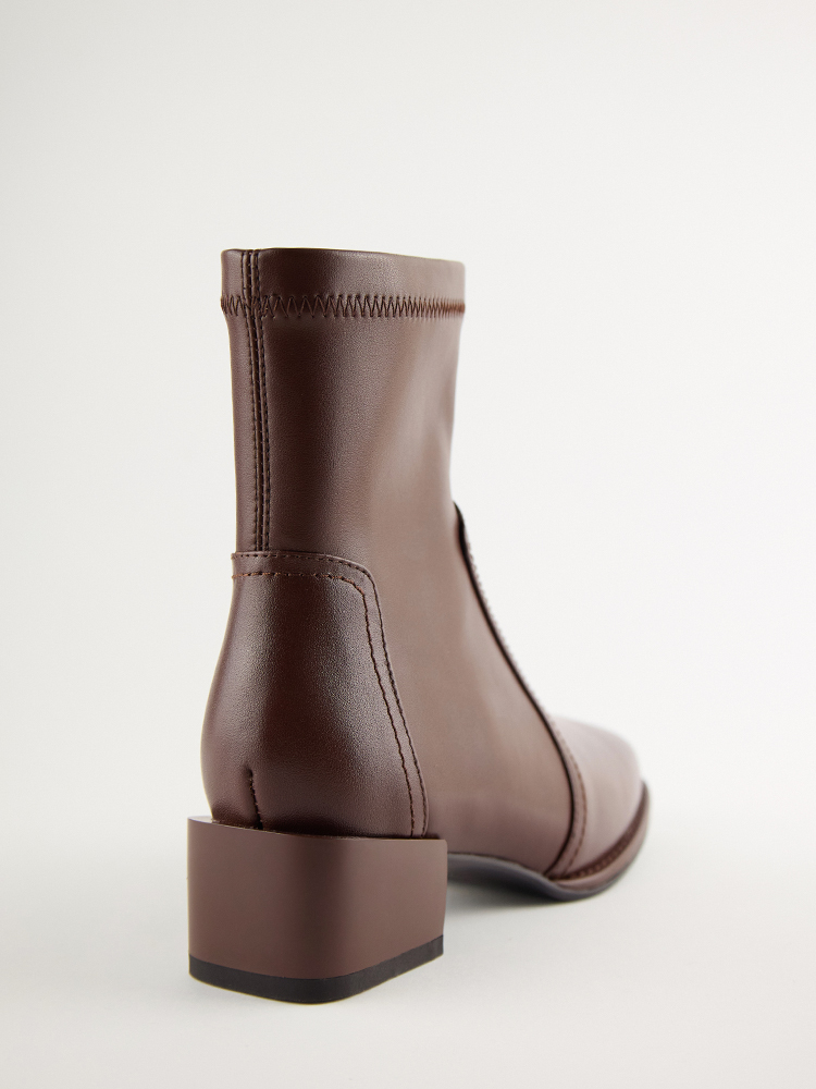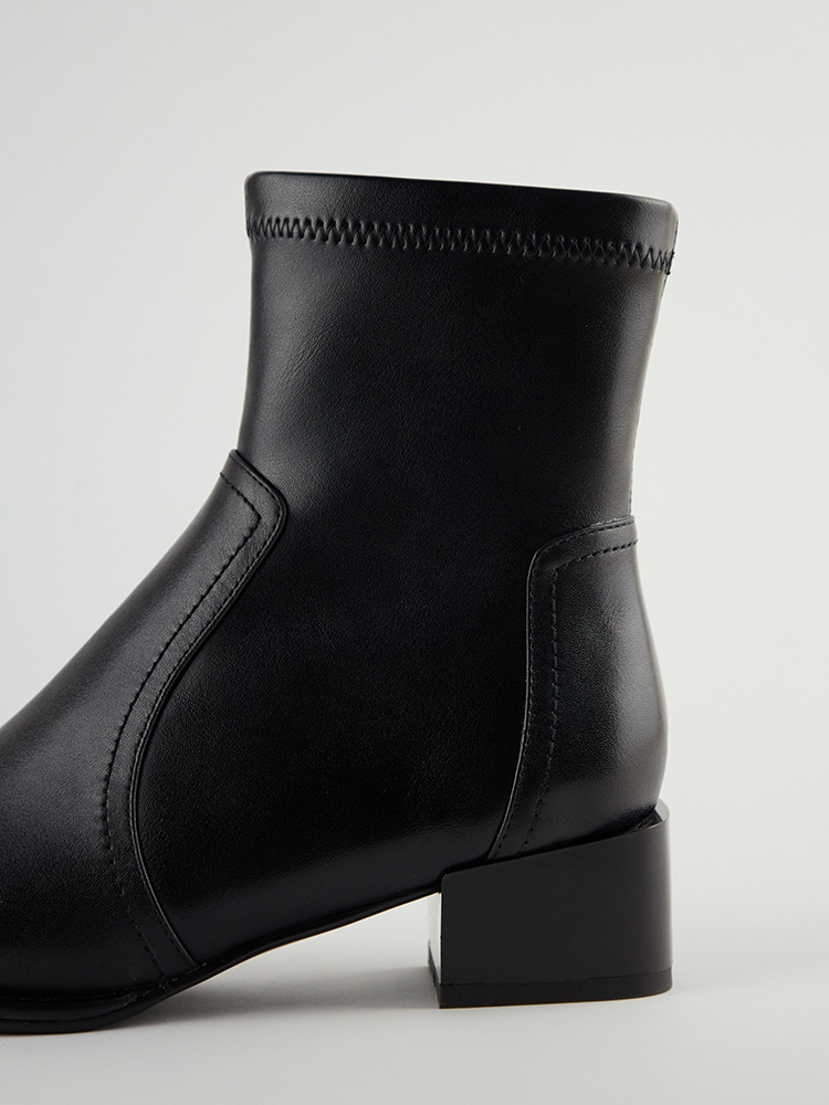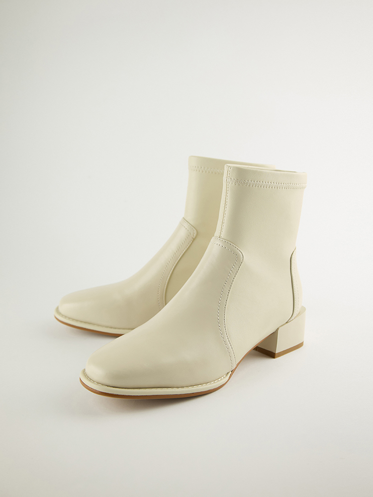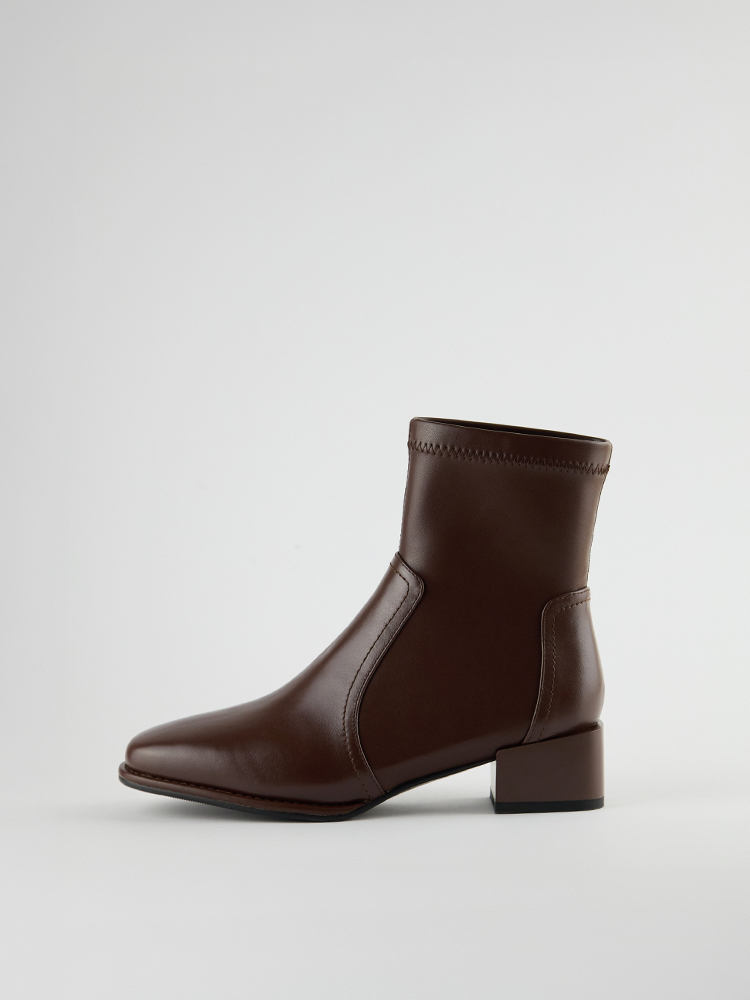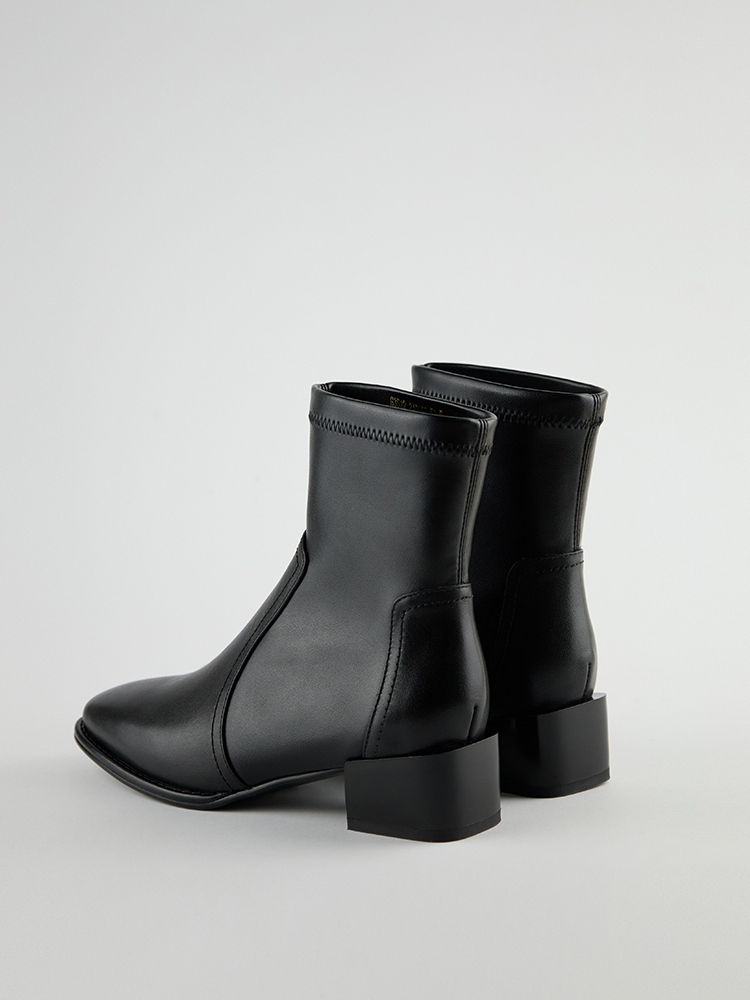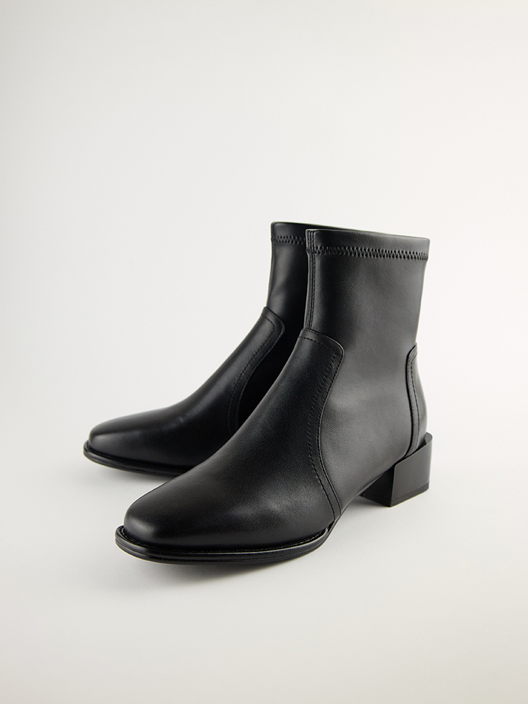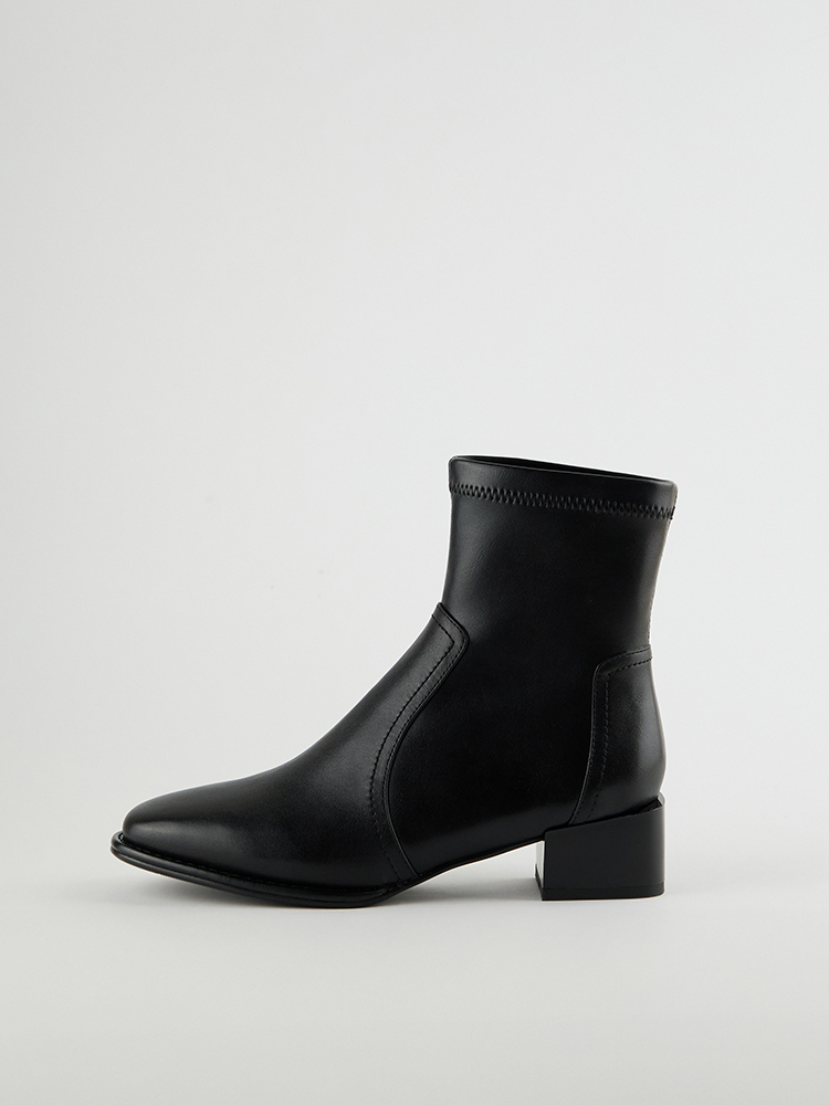 ■ 亮面皮革方頭低跟襪靴