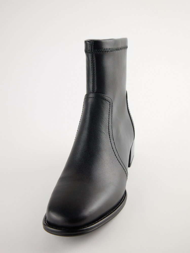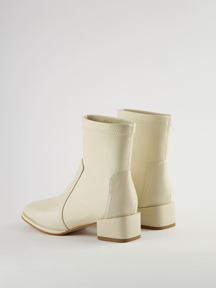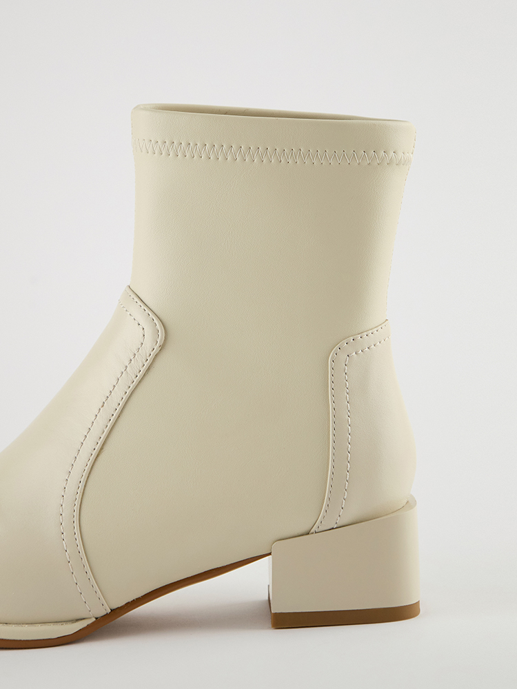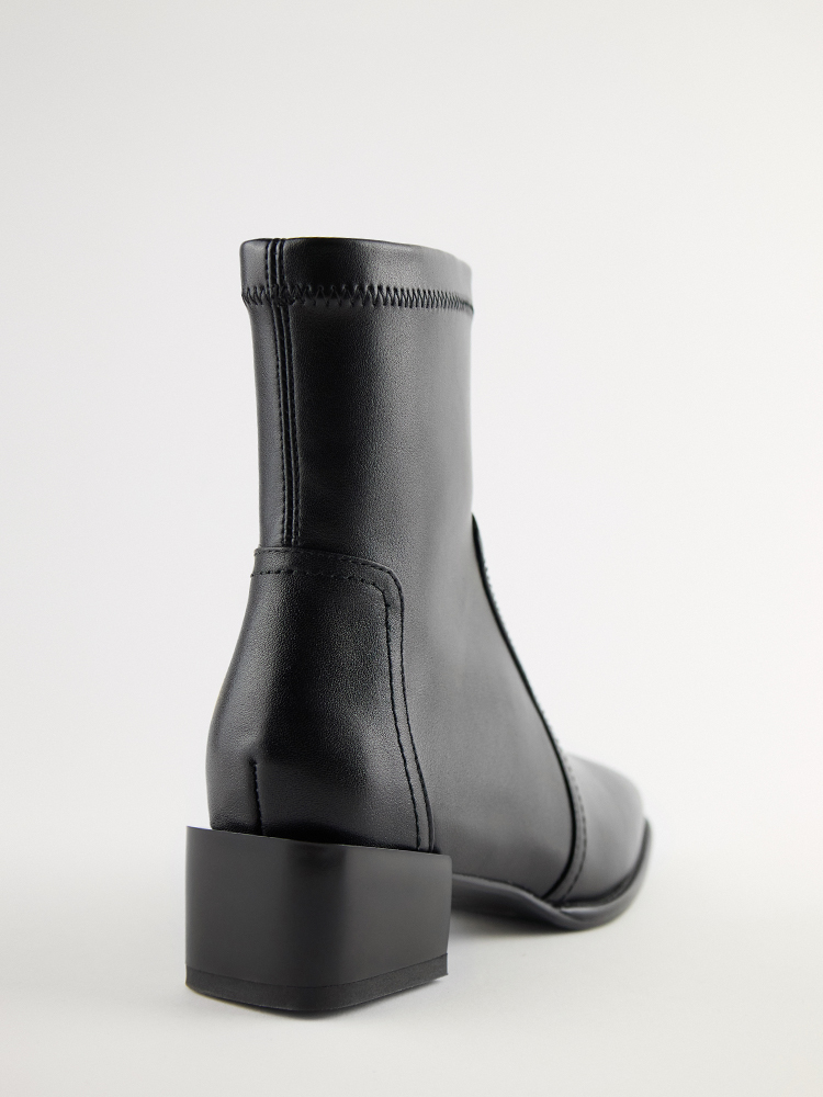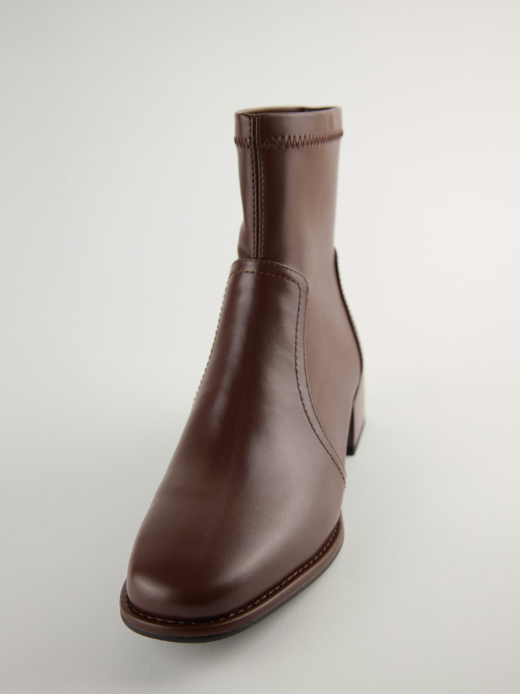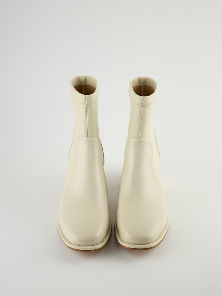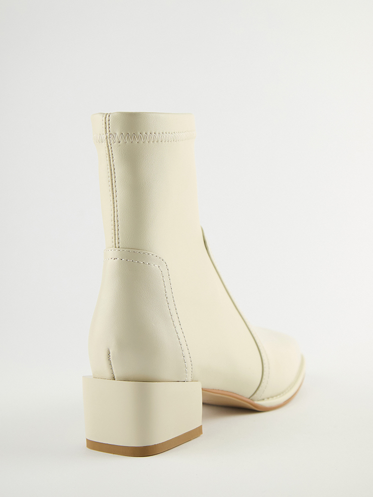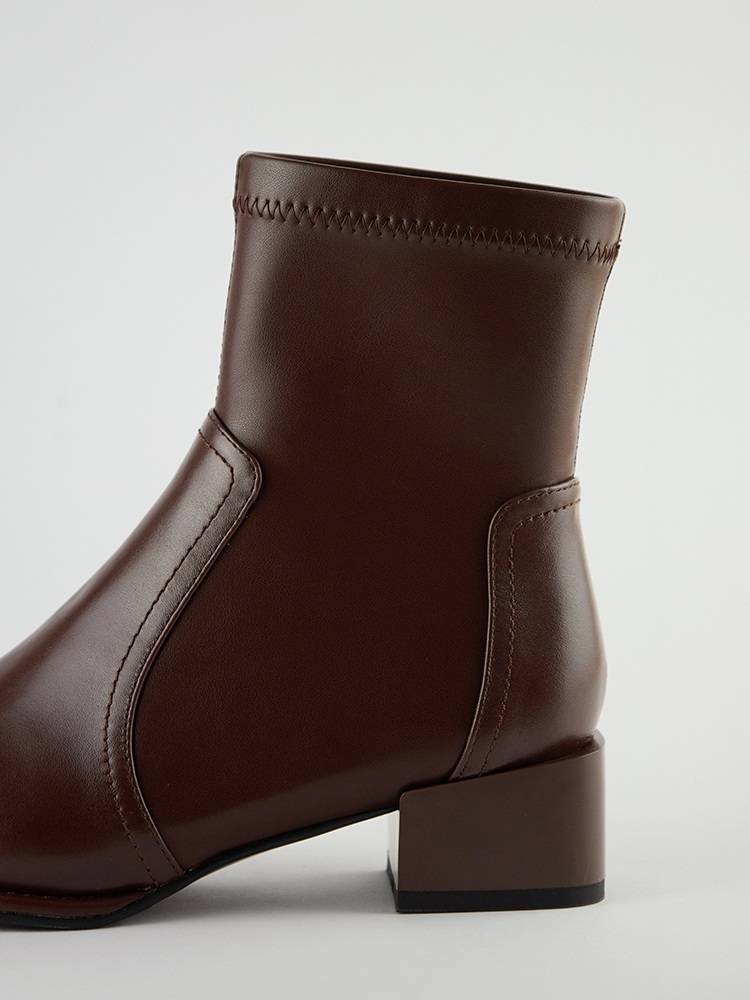 ■ 亮面皮革方頭低跟襪靴