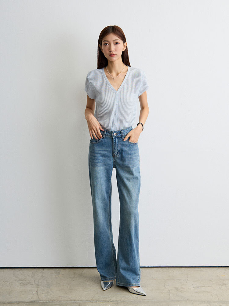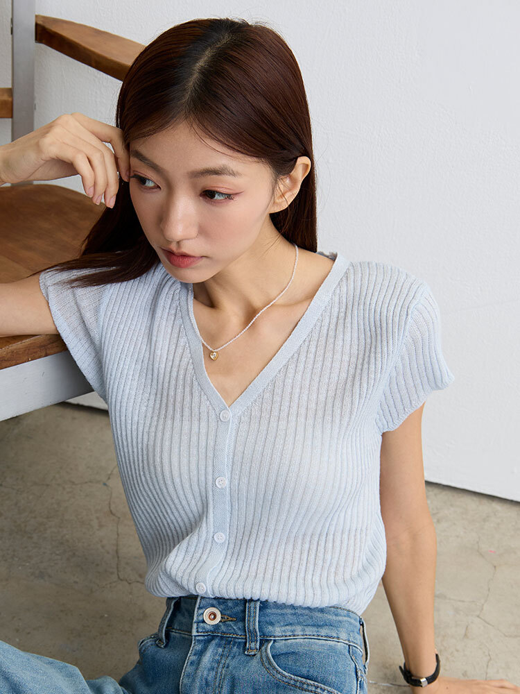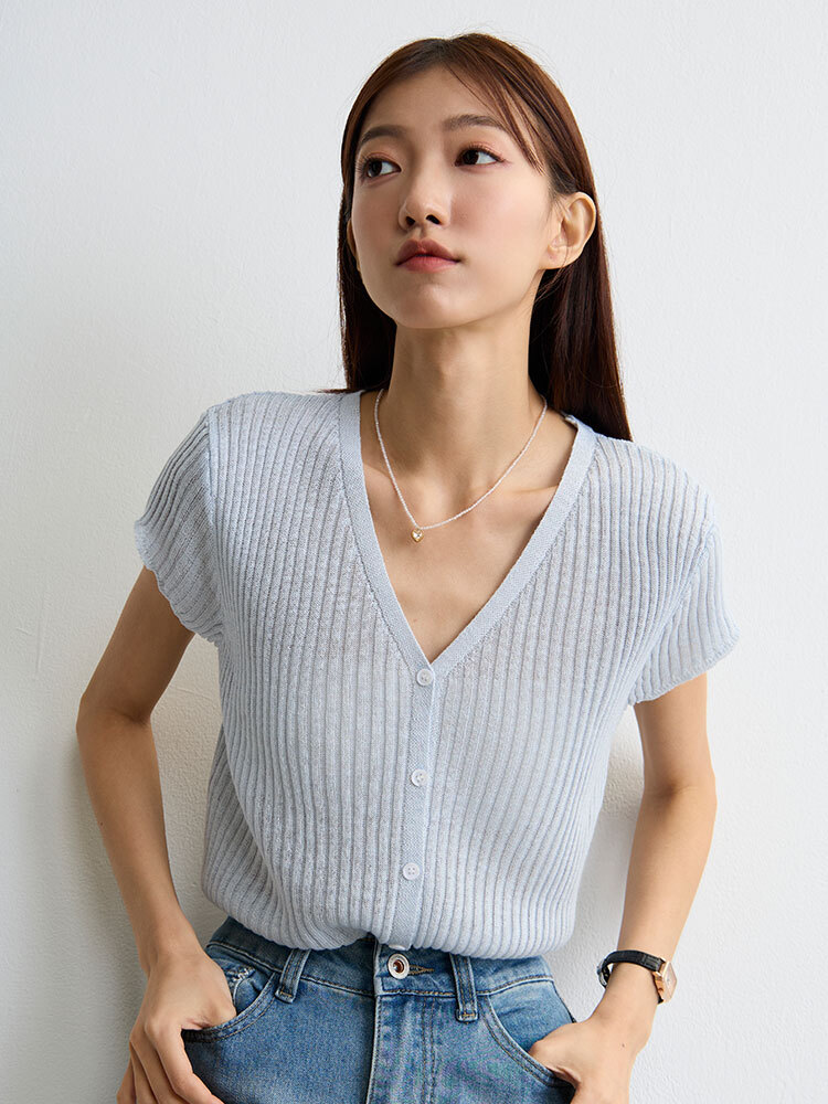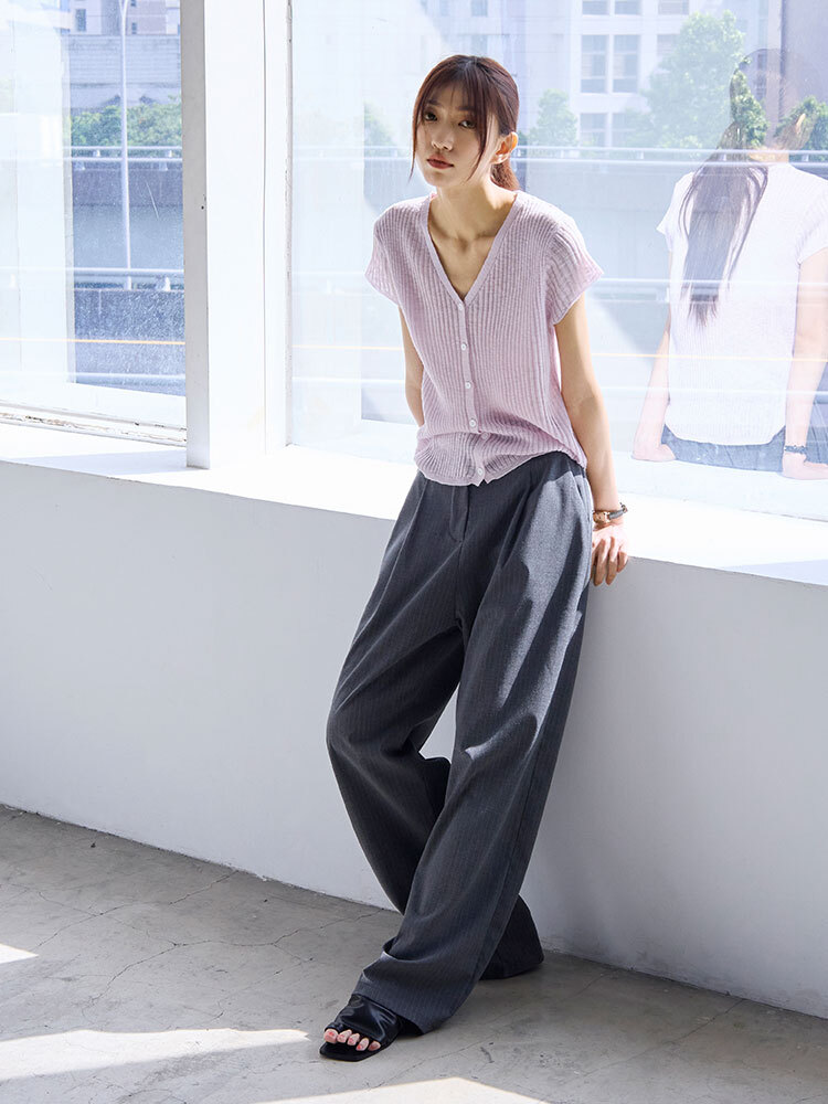 V 領剪裁修飾臉型,打造簡約俐落線條