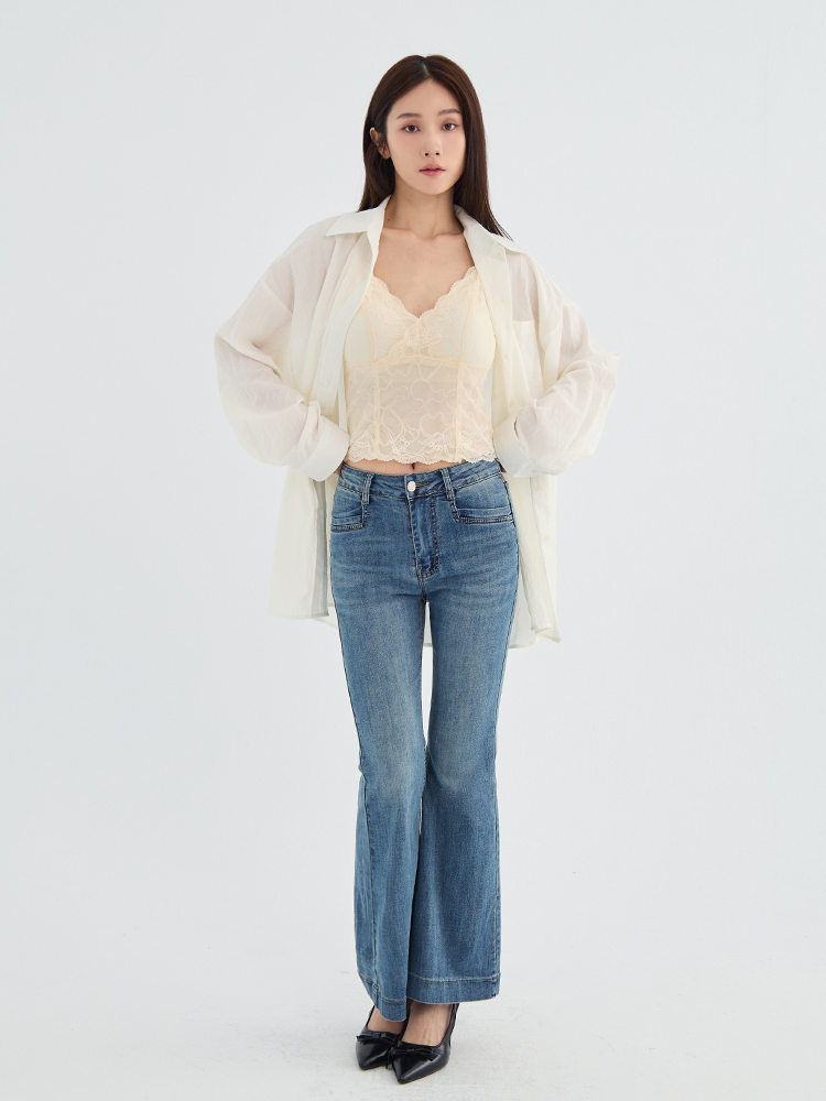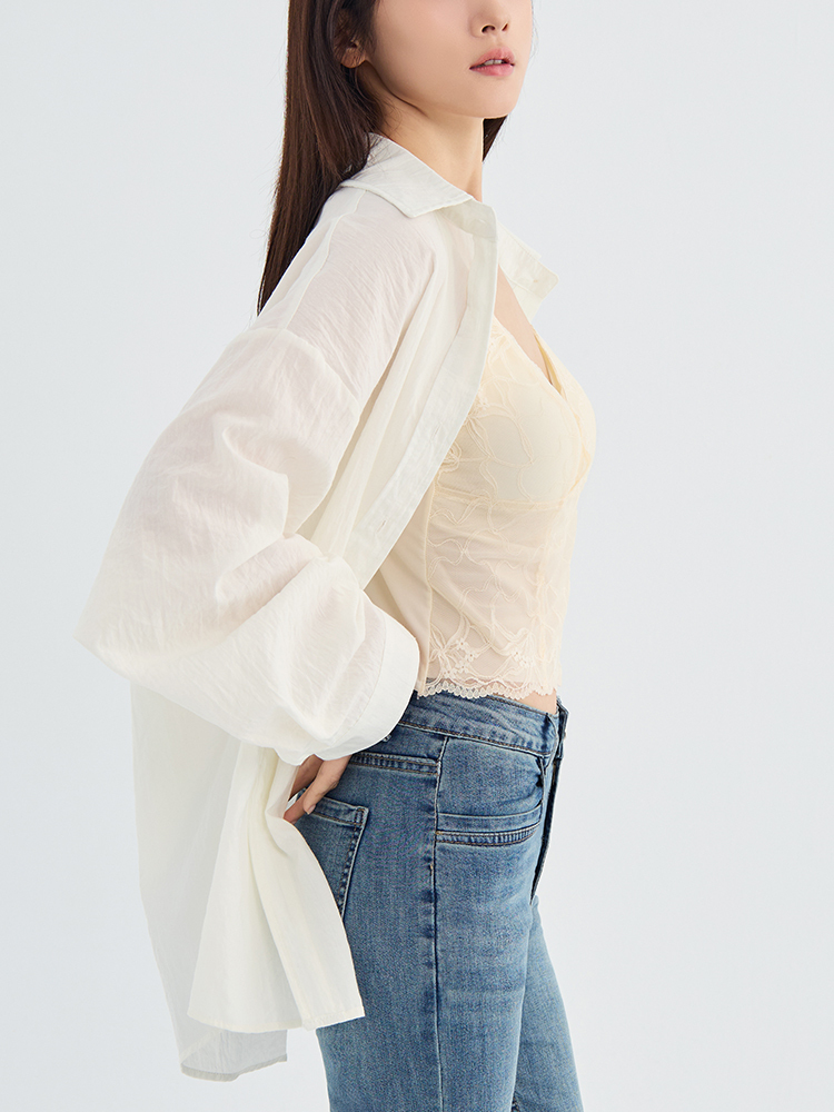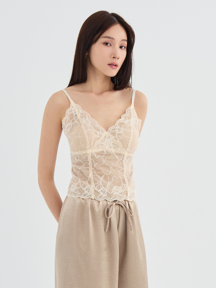 採用細膩的雕花蕾絲設計,呈現出優雅的V 領線條,完美勾勒浪漫層次。