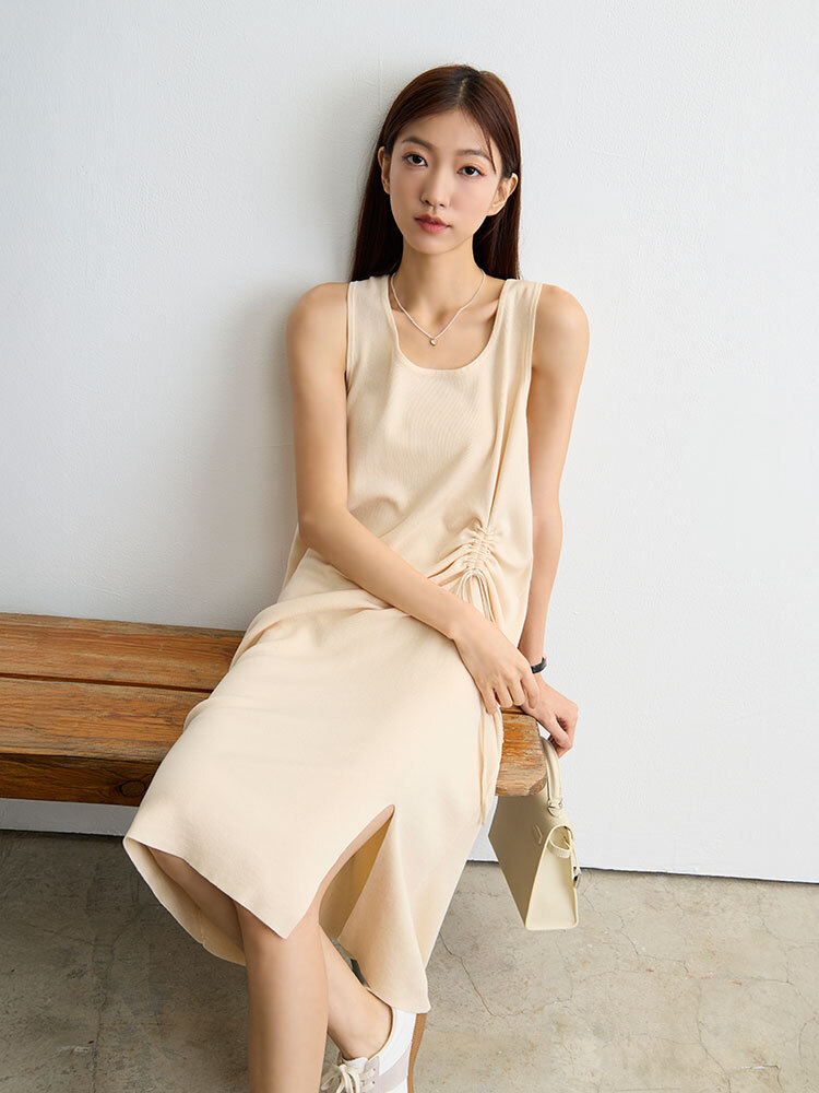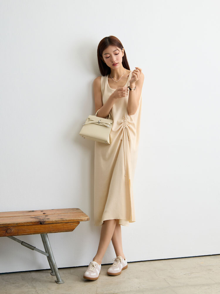 俐落無袖背心剪裁與抽繩細節,融合時尚與實穿性,輕鬆詮釋休閒優雅風格